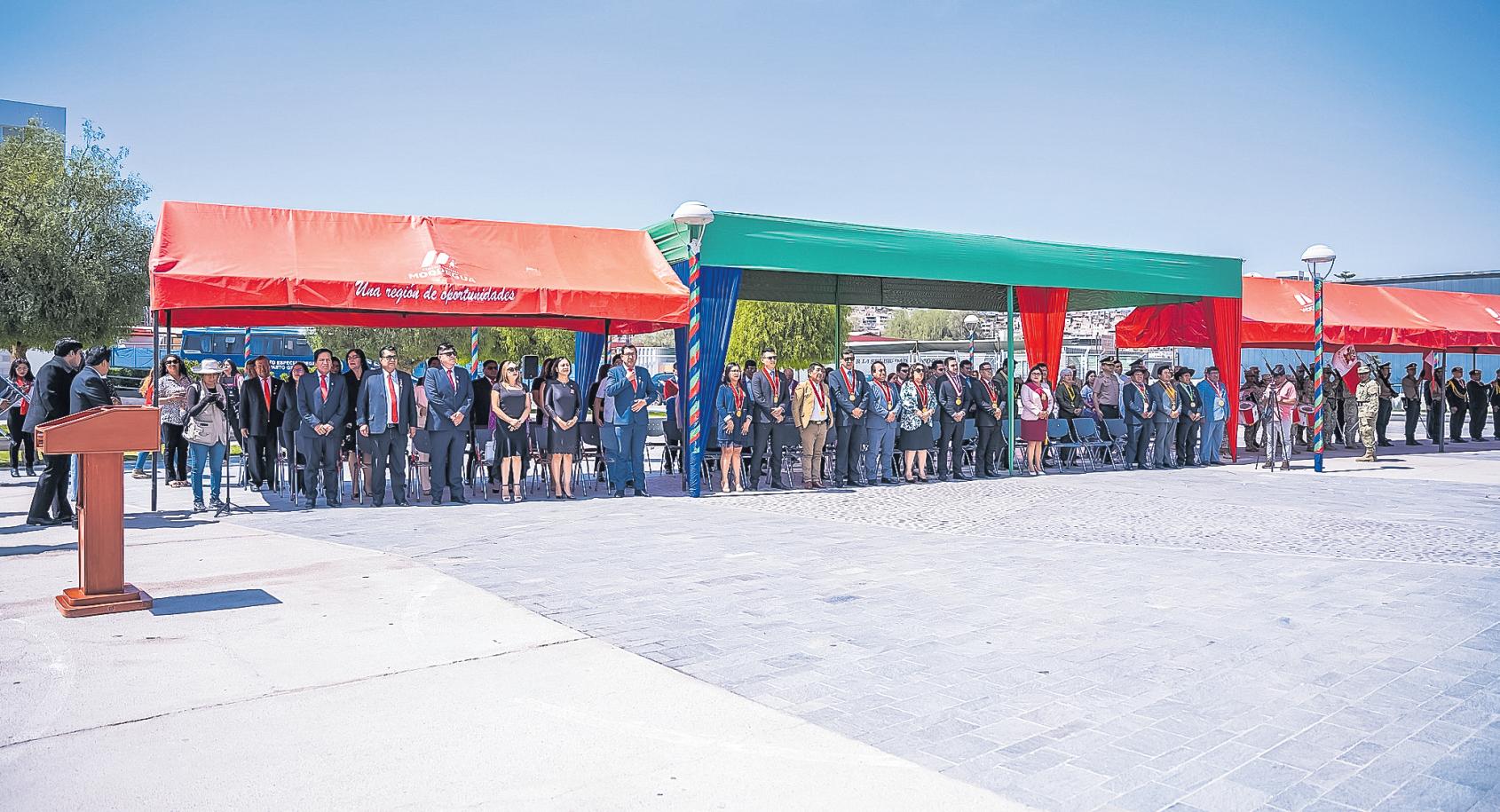 miento del Pabellón Nacional ylaBanderadeMoquegua,ceremoniarealizadaenlaexplanada del Gobierno Regional deMoquegua(GORE).Aleventoasistieronautoridadeslocales, como consejeros regionales de Moquegua y Arequipa, alcaldes, regidores provinciales y distritales,además de representantes de diversos centrospoblados.