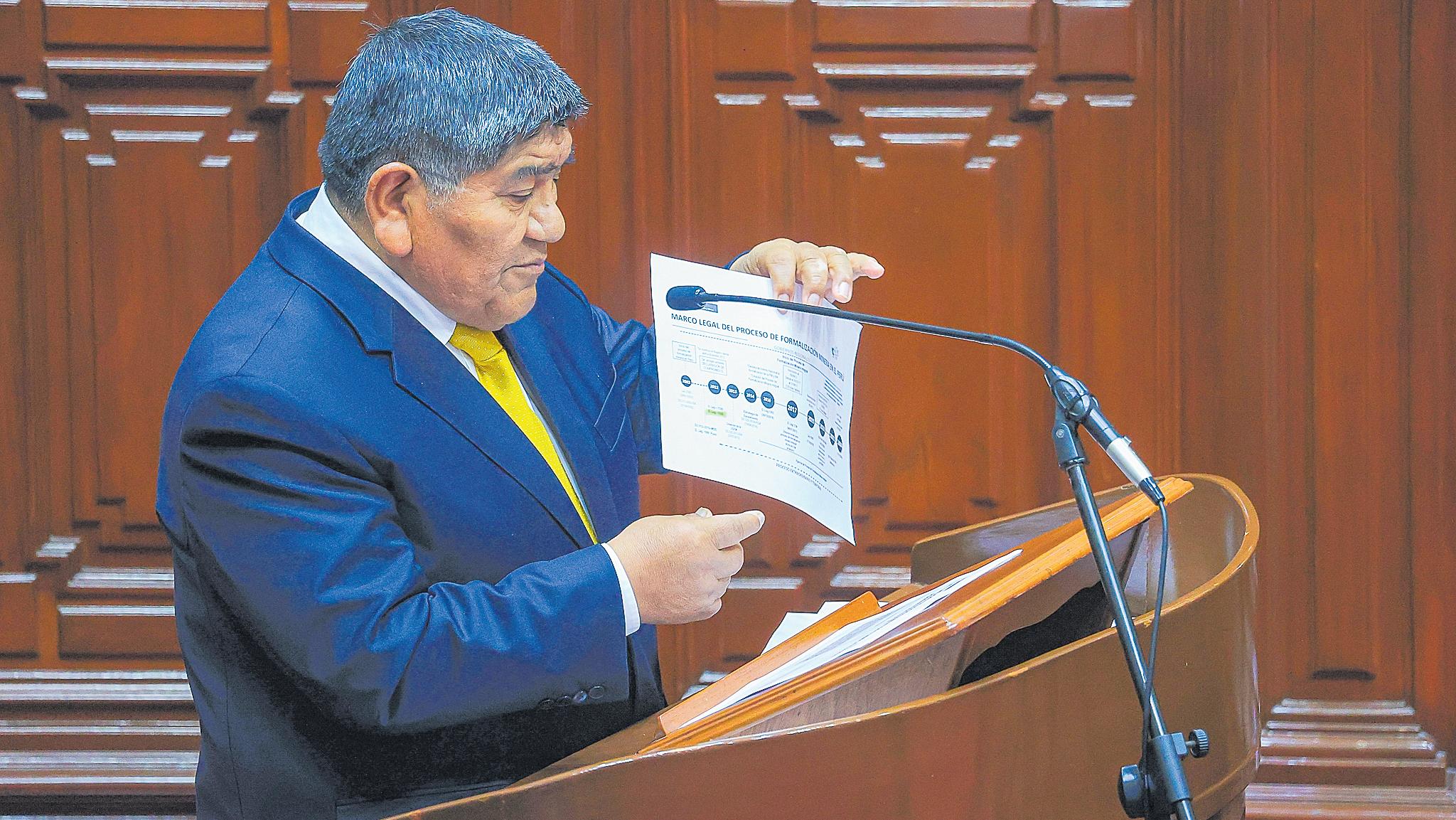 | Ministro Rómulo Mucho cuando expuso el Proyecto de Ley MAPE ante el Pleno del Congreso. |