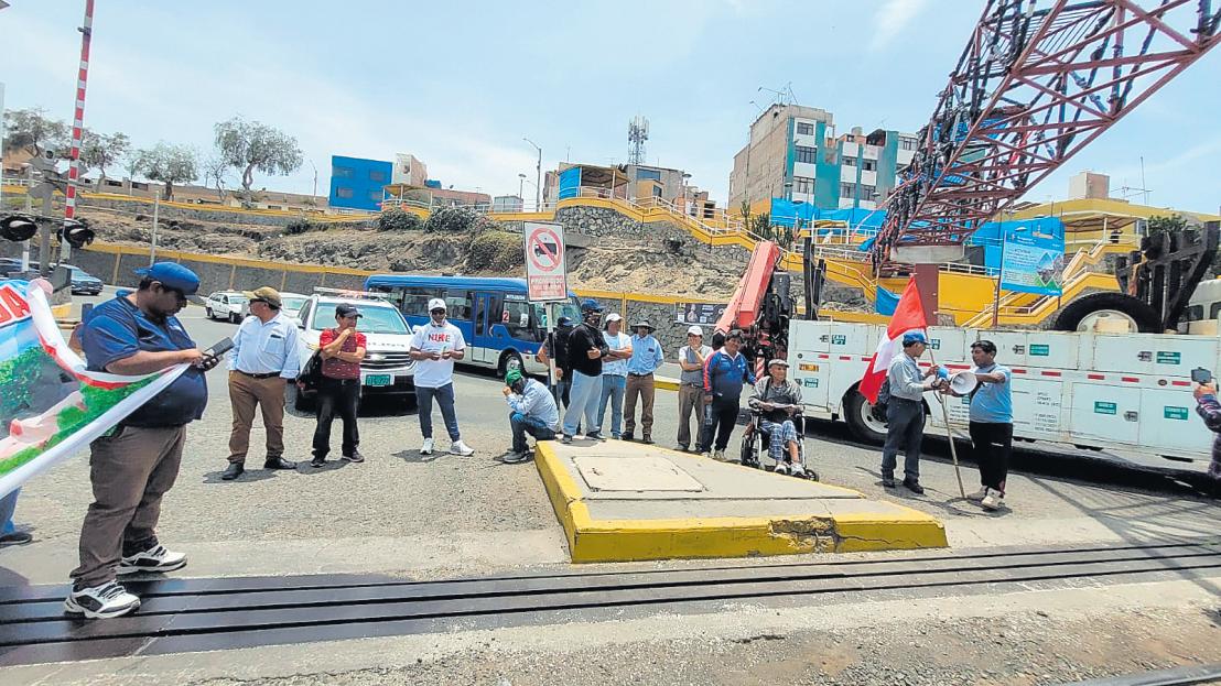 Un grupo de representantes dediversasorganizacionessociales y sindicales de Ilo realizóunplantónenelcrucedeEl Ratón,demandandounasolución inmediata a la contaminación del agua potable en la ciudad,así como otras necesidades urgentes de la población.
