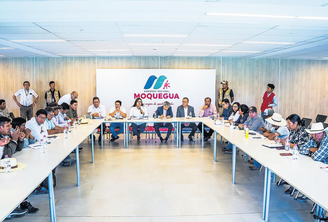 En una reunión celebrada en la sede del Gobierno Regional de Moquegua, destacó la actitud de la gobernadora Gilia Gutiérrez, cuya estrategia pareció centrarse más en
