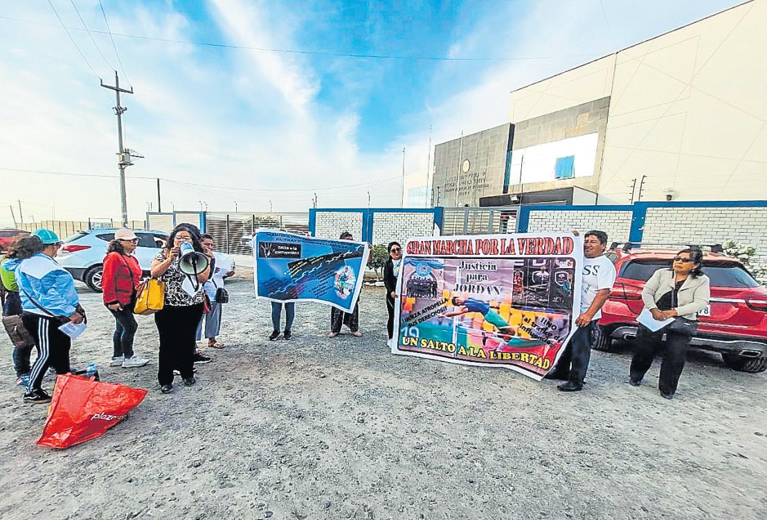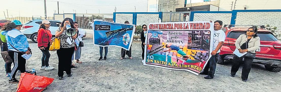 Los familiares de Jordan Salas Reynoso (20) realizaron un plantónfrenteallocaldelaFiscalía en la Pampa Inalámbrica,expresandosurechazoan-