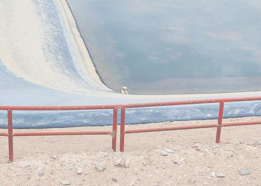 la planta de tratamiento, ya que estas pozas representan un riesgo tanto para la población como para las mascotas, que a menudo resbalan y encuentran difícil salir debido a lageomembrana.