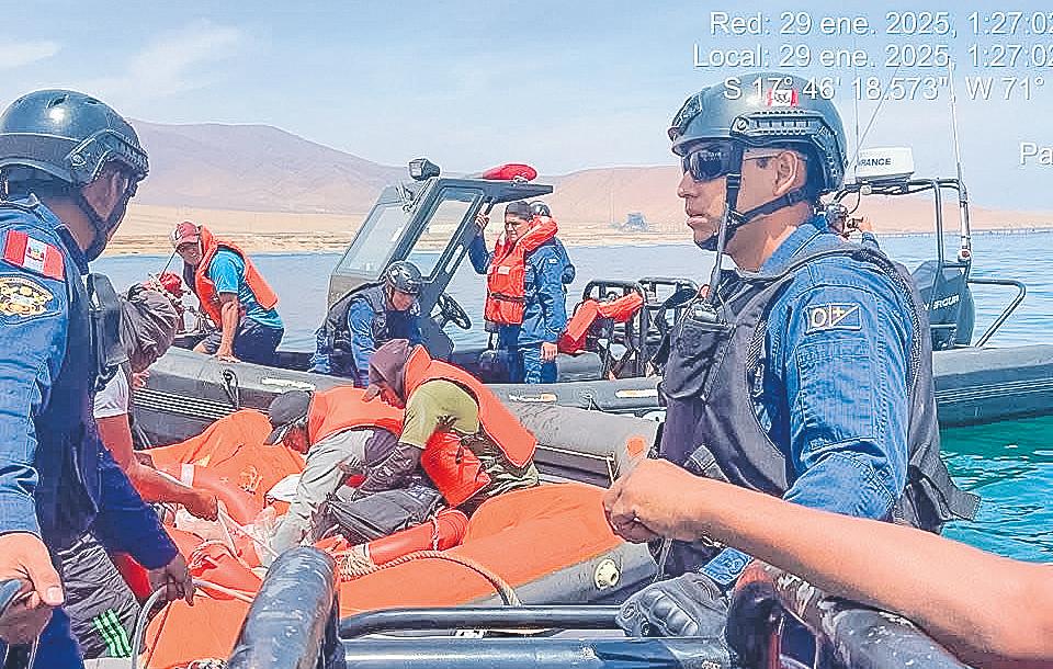 04871-CM), la cual se hundió frentealpuertodeIlo,enlaregión Moquegua. Los rescatados fueron trasladados de emergenciaauncentromédicolocalparasuatención.