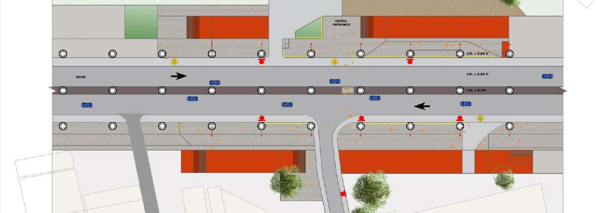 Yelachenahalli, located on the Green Line's North-South corridor on Kanakapura Road, features an elevated metro station. This densely developed neighborhood includes malls, high-rises, schools, restaurants, and shops within a 1km radius, leading to significant metro use by school children The surrounding area mainly consists of residential and commercial properties along with industries, temples, parks, and a lake However, the accessibility to key locations such as the JKV School on the east side of the station poses safety concerns for children and the elderly due to on-street and footpath parking. Moreover, there is a lack of continuous footpaths connecting the station to adjacent bus stops and landmarks. As part of this project, I conducted comprehensive site visits to assess the current conditions and identify key areas for improvement. My responsibilities included site analysis, planning, designing, and setting the strategy and detailed design for the accessibility plan I also worked extensively on 3D modeling, rendering, and the complete start-to-end planning process This holistic approach aimed to enhance the safety and connectivity of the Yelachenahalli metro area, making it more accessible for all residents and visitors.