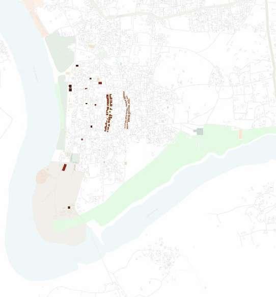 This heat map demonstrates where people are concentrated and where tourists go the most As a result, both the Nath temple and certain other landmarks are visited by pilgrims, although not all of them We can tell that the locals and Pilgrims were not particularly interlinked However, the River's margin plays a crucial role in this