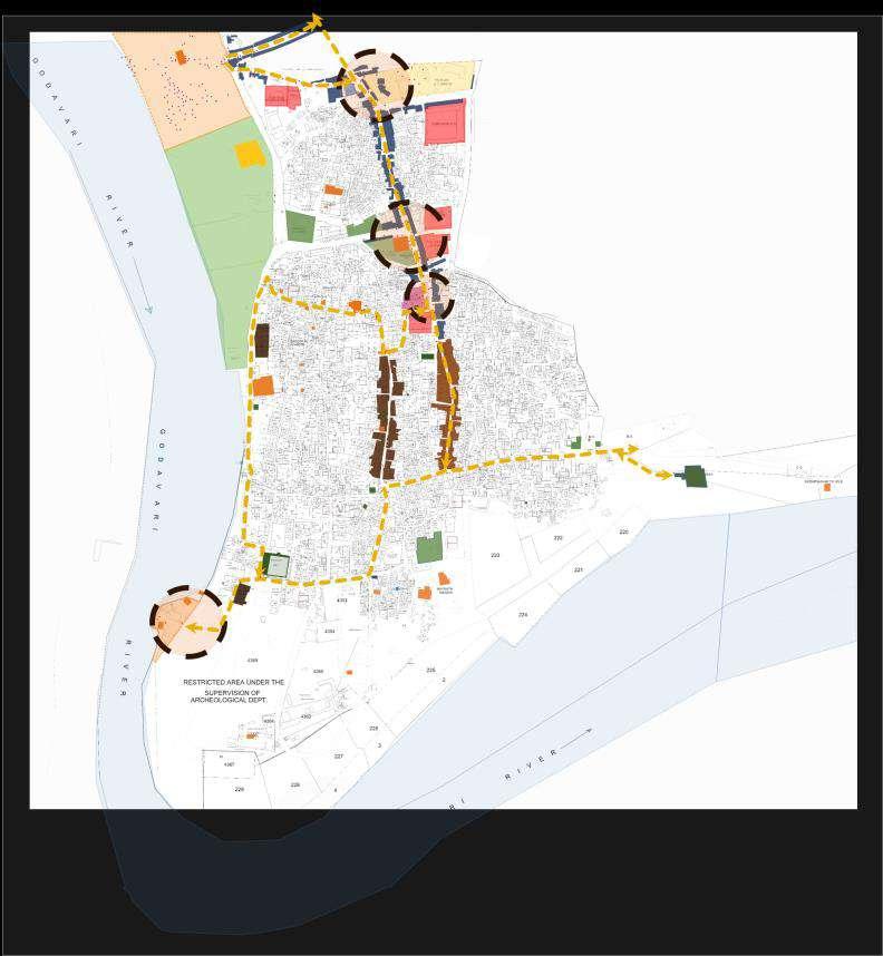 Additionally, it highlights the street with historic architecture It portrays the heritage of the dying Paithan The main gathering site is adjacent to the bus stop, which is the main intersection in Paithan The second gathering area is at Shivaji Chowk, which is on a commercial street Ghats are a significant component of Paithan