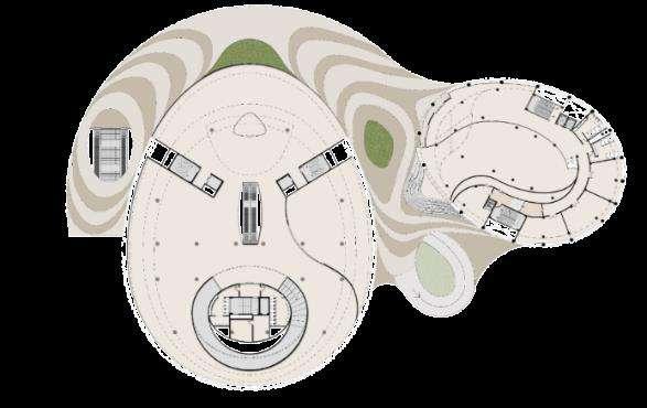 The conceptual Form is derived from the shape of ellipsoid. We developed a diagrid structural system that acts as a complete frame to achieve a large column less space in the last level The lowers levels have independent structural systems in both blocks. Further, we created the skin which is wrapped on the structural shell as a cladding material.