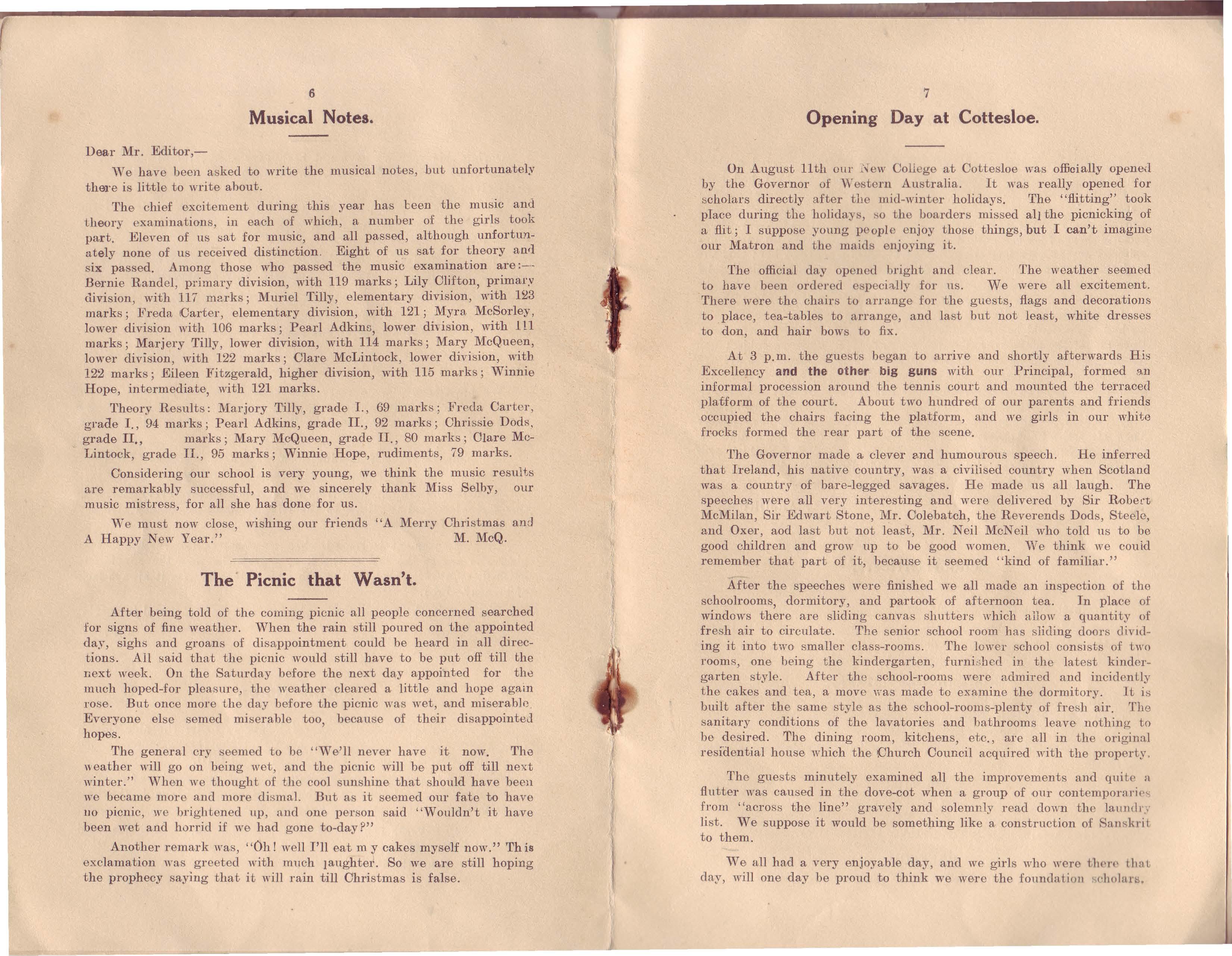 We in Cottesloe miss the daily companionship of the Perth girls (tho old school being retained as a day school only), but we hear of them very often and see them on festive occasions.