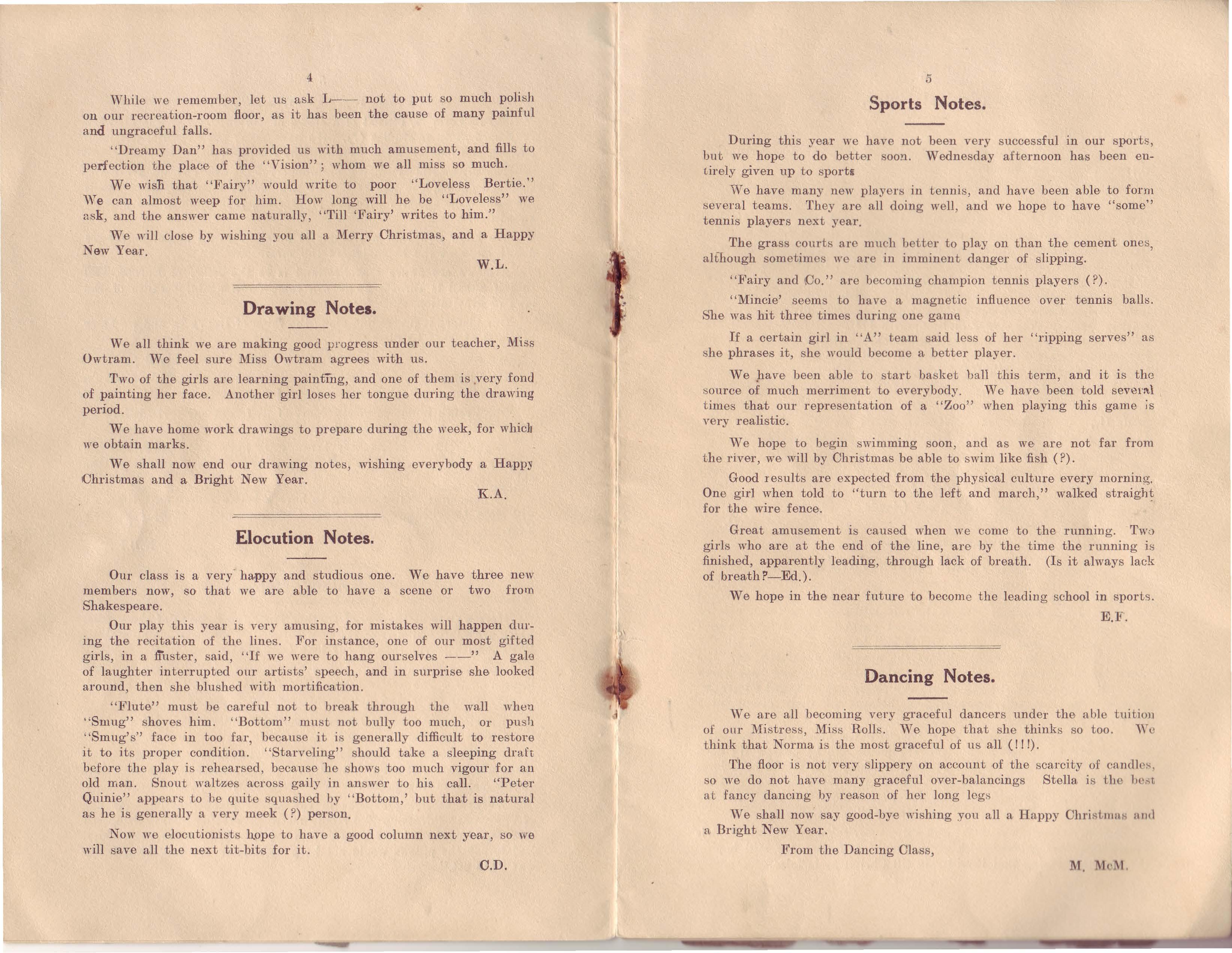 In conclusion we think we are in a very happy and contented scliool and take this opportunity of thanking the members of the Church Council and our teachers for their kind interest in our welfare. We wish them and all our readers the Compliments of the Season .