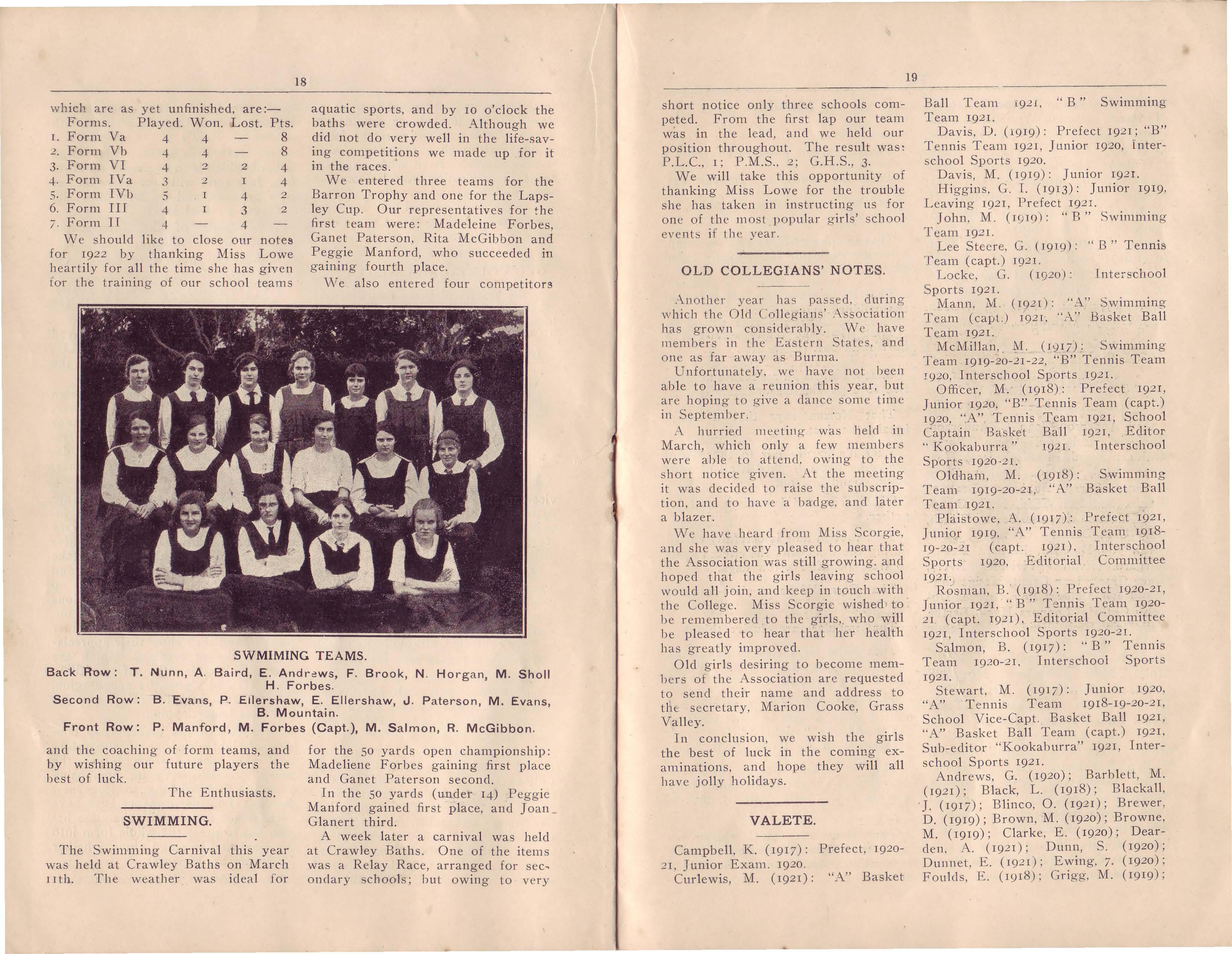 At the beginning of the year we were all very sorry indeed to hear of the resignation of our former prln, cipa l , Miss Scorgie, after six years' of devoted service in establishing and developing the school. The beSit wishes of all her old pupils go with her in her future life. vVe wish to tender our new principal, Miss Finlayson , our very heartiest welcome. and to let her know how gratefu l we are for all that she has already clone for the school, and for the enthusiasm with which she has entered into our school life. We also offer our "bienveillances" to Miss Bu ll and Miss Mann, and particularly to Miss Noble, who was here as a stl1dent . in 1917, and has now come back as a mistress.