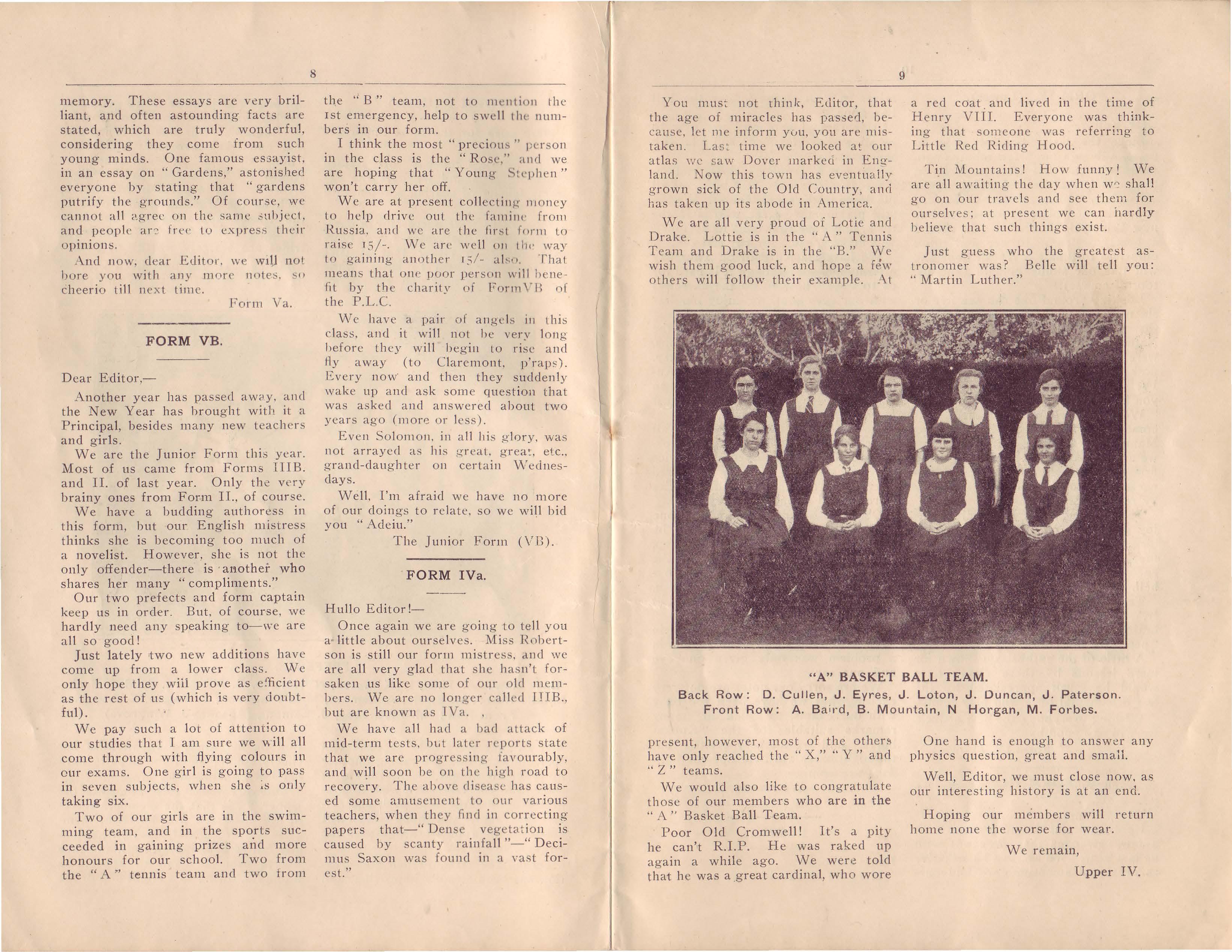 Once again we are go in g to tell you a· little about ourselves. Miss Robertson is still our for111 mistress. J.nd we are all very glad that s he hasn't forsaken us like some of ou1· o ld members. We arc no lon gc 1 · cal l ed ITIB., but are known as lVa.