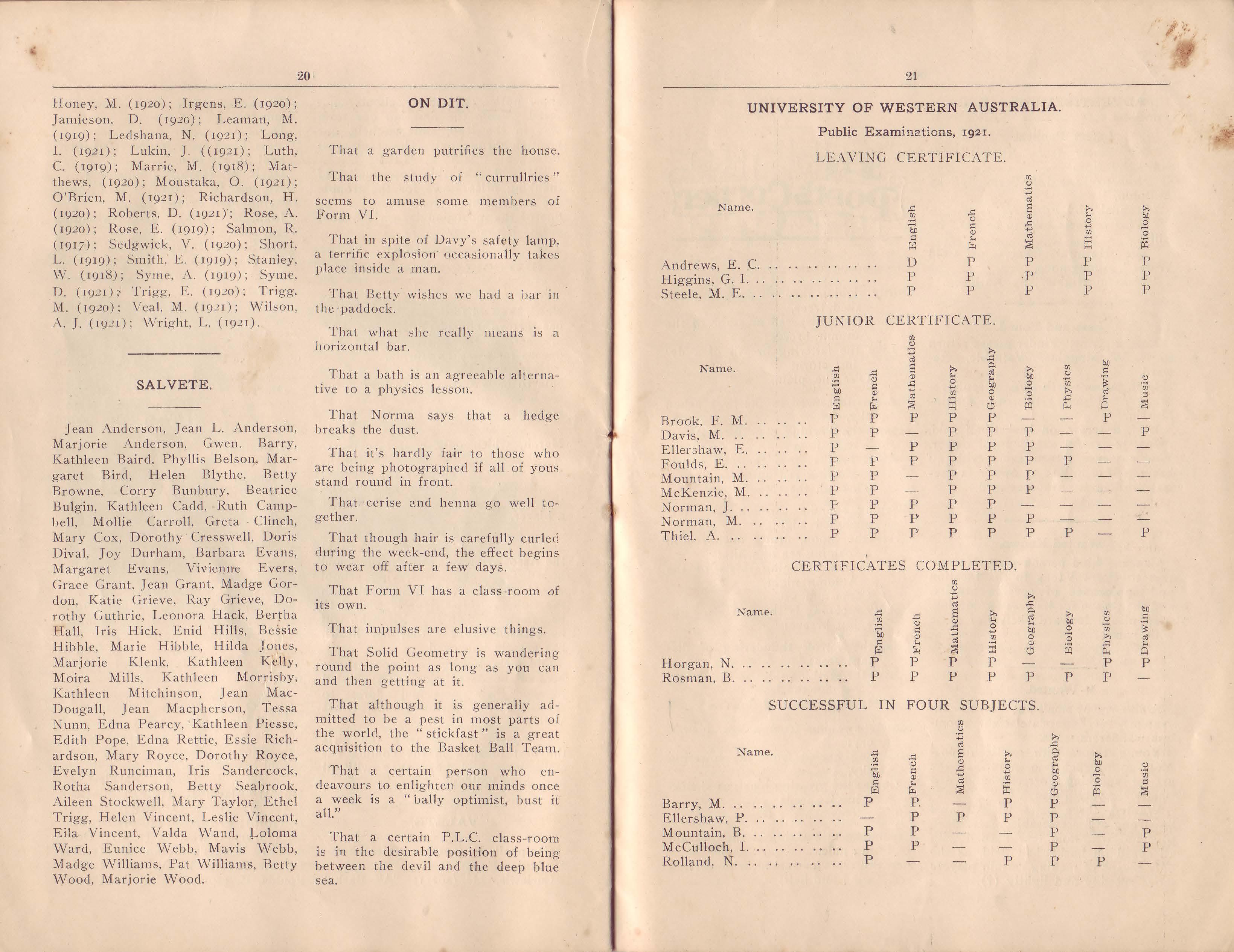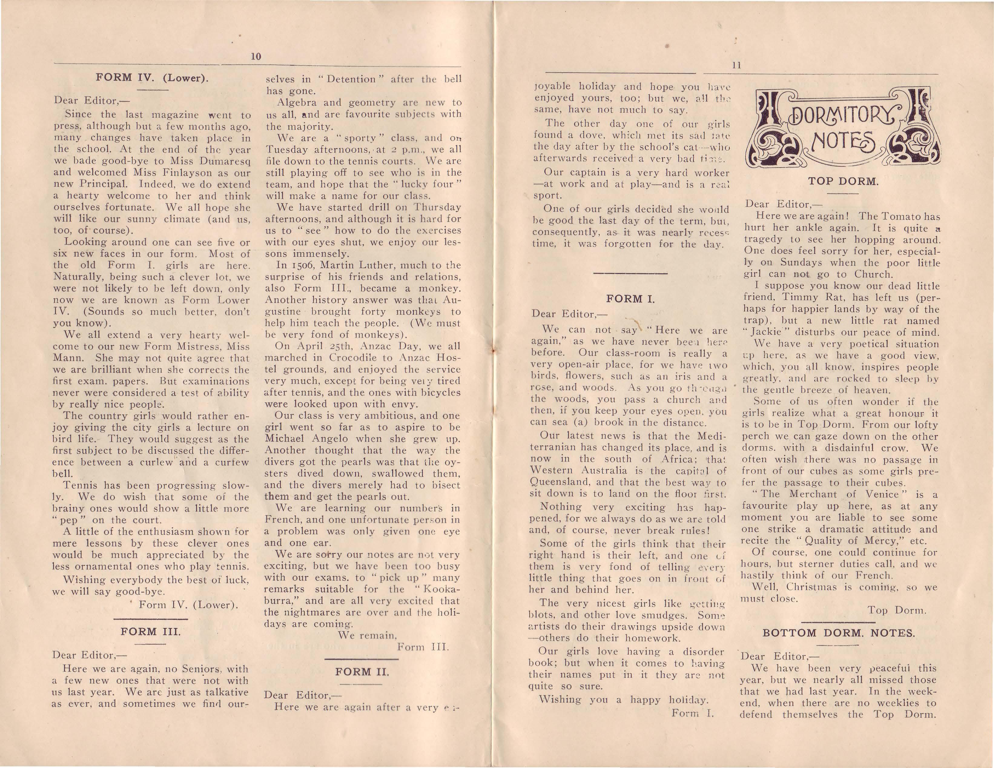 There are more girls emering fo r University exams. this year than ever before. The Leaving Class-·-being twice the size i;t was last year·-now compr ises eight g irls and t he J1tnior Class numbers neary thirty. \". 'e w ish to extend our sincerest sy mpathy to these .t!ir ls as the dreadful exams. draw nearer. \Vc a l so wish them the best of good lu ck and ask them to uo their best for the old school an I i1elp to make as good a name for it in scholarship as it has a lr eady achieved in spor,t.
