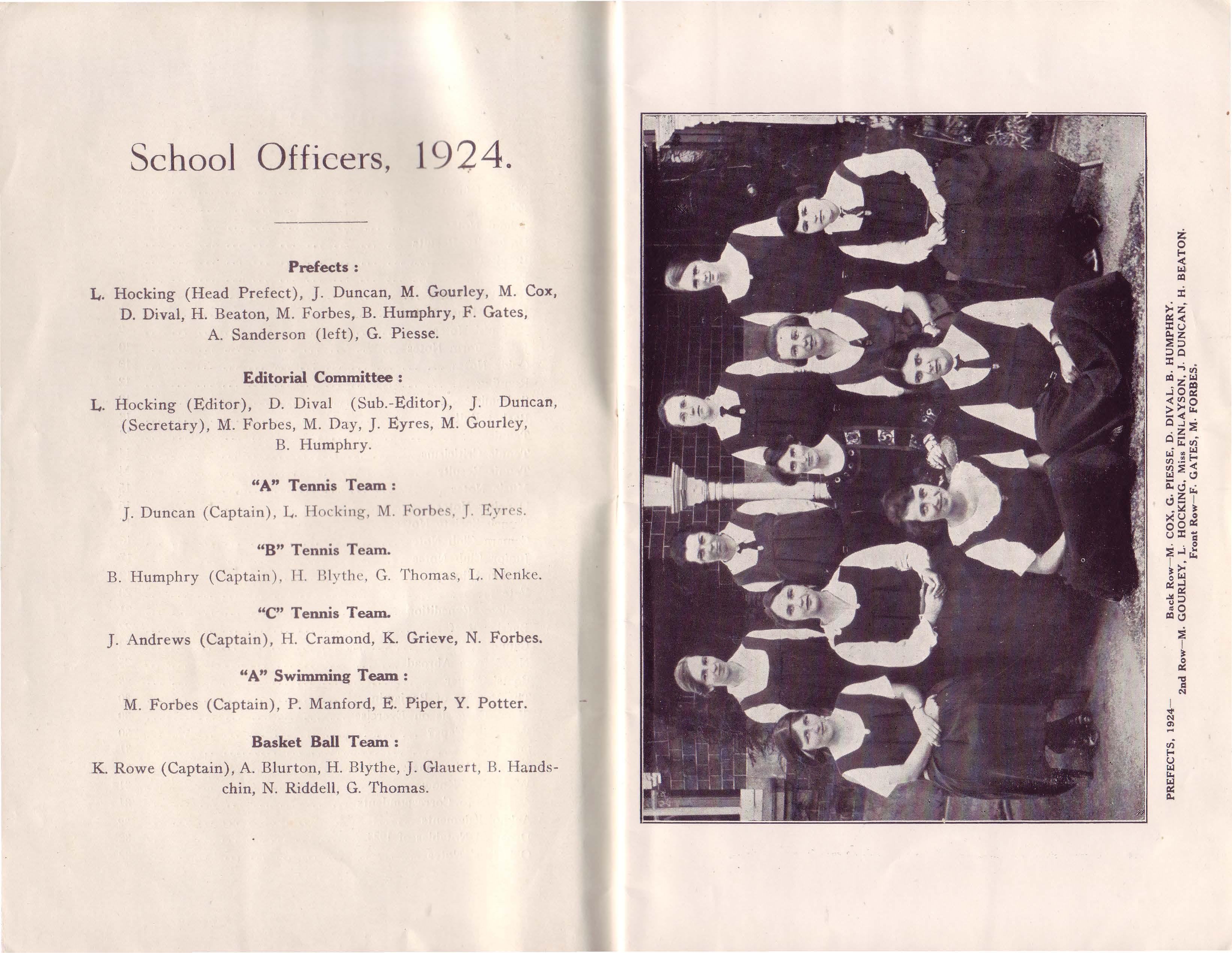 B Hobbs -(1919-1924). Swimming 1921; ·Basket· Ball 1923; Inters. 1922-1923. ;s B:ibble.-(1922-.d23). Basket Ball ·1923; Interschool Sports 1923.