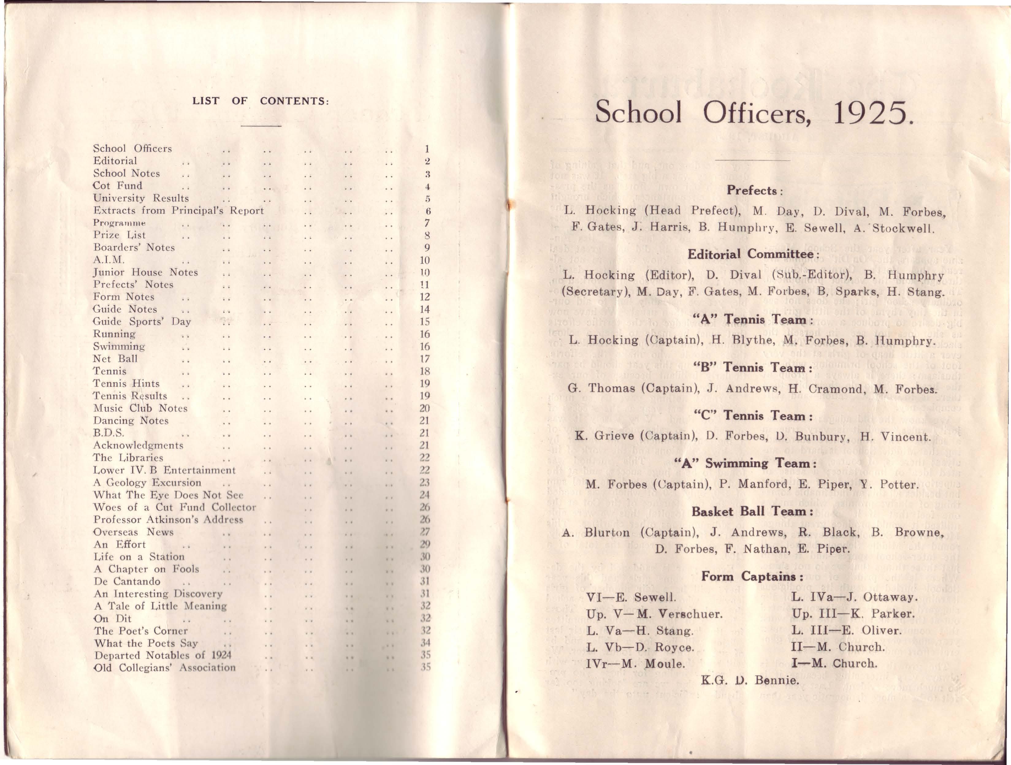 The above office-bearers were elect· ed at the Fourth Annual Meeting of the Association held on Saturday, February 28th, 1925. This year it was decided to enlarge the Committ e e b.v two Country Members and two Metropolitan members. It was also decided that the Old Girls Charity Committee should raise money yearly, the sum total to be handed to the School Fund for the Cot in the Children's Hospital.