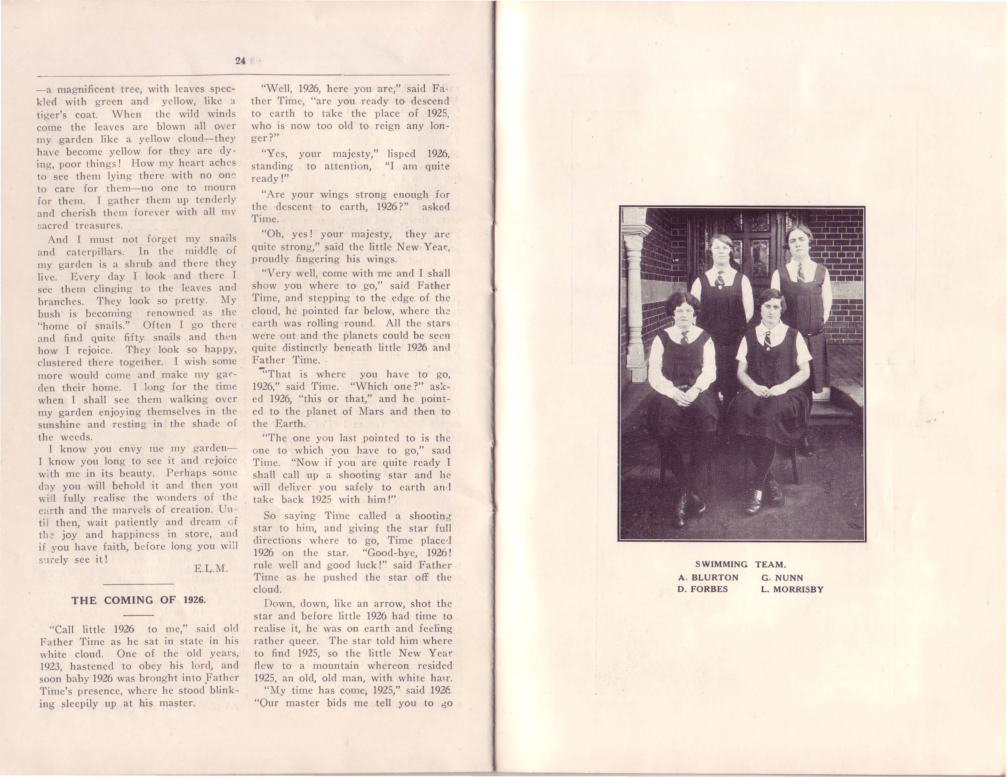 E. Piper (1918), "A" Swimming Team, 1924-5; Net Ball, 1925.