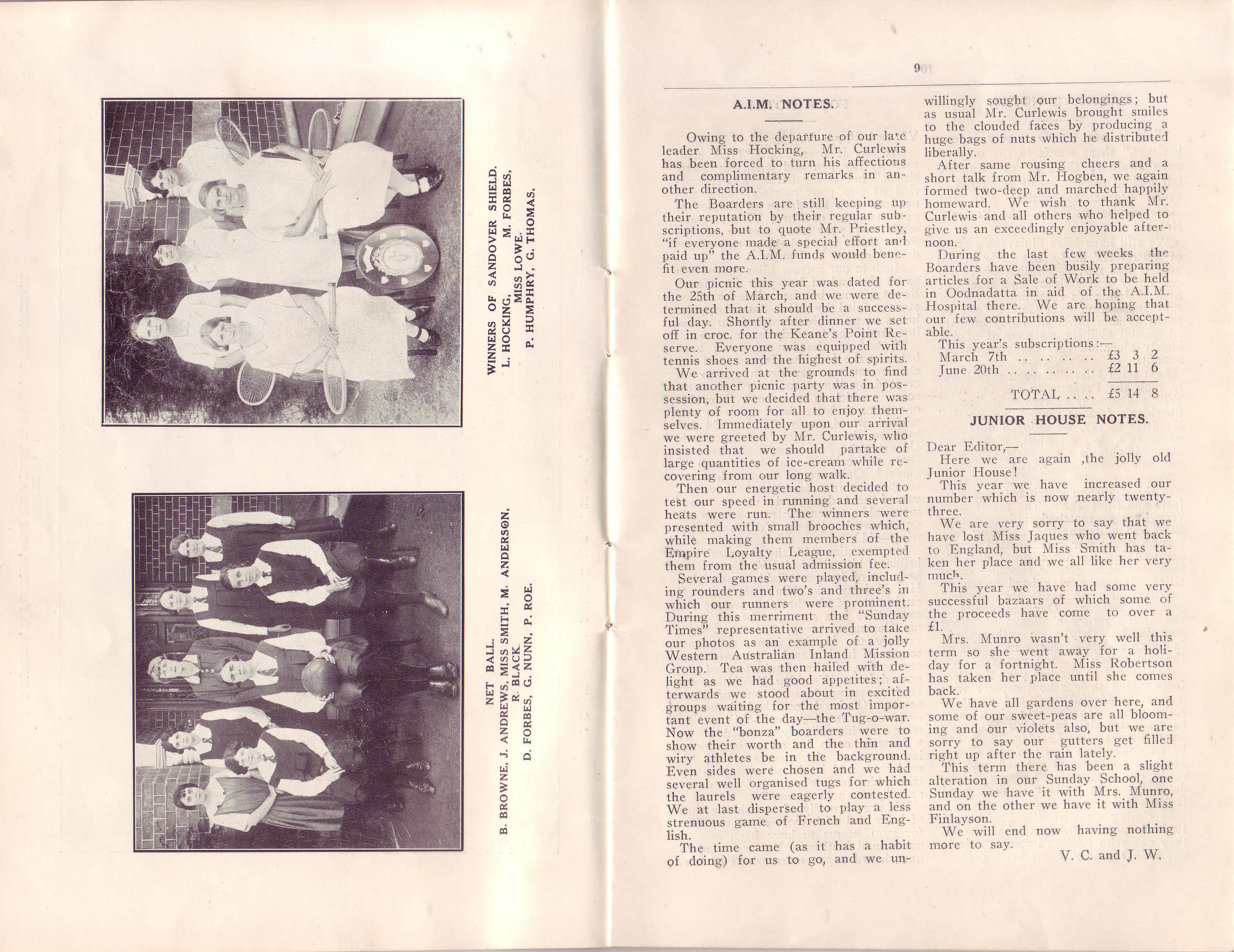 J. Glauert (1921), Net Ball, 1924; Inter-School Sports, 1924-5.