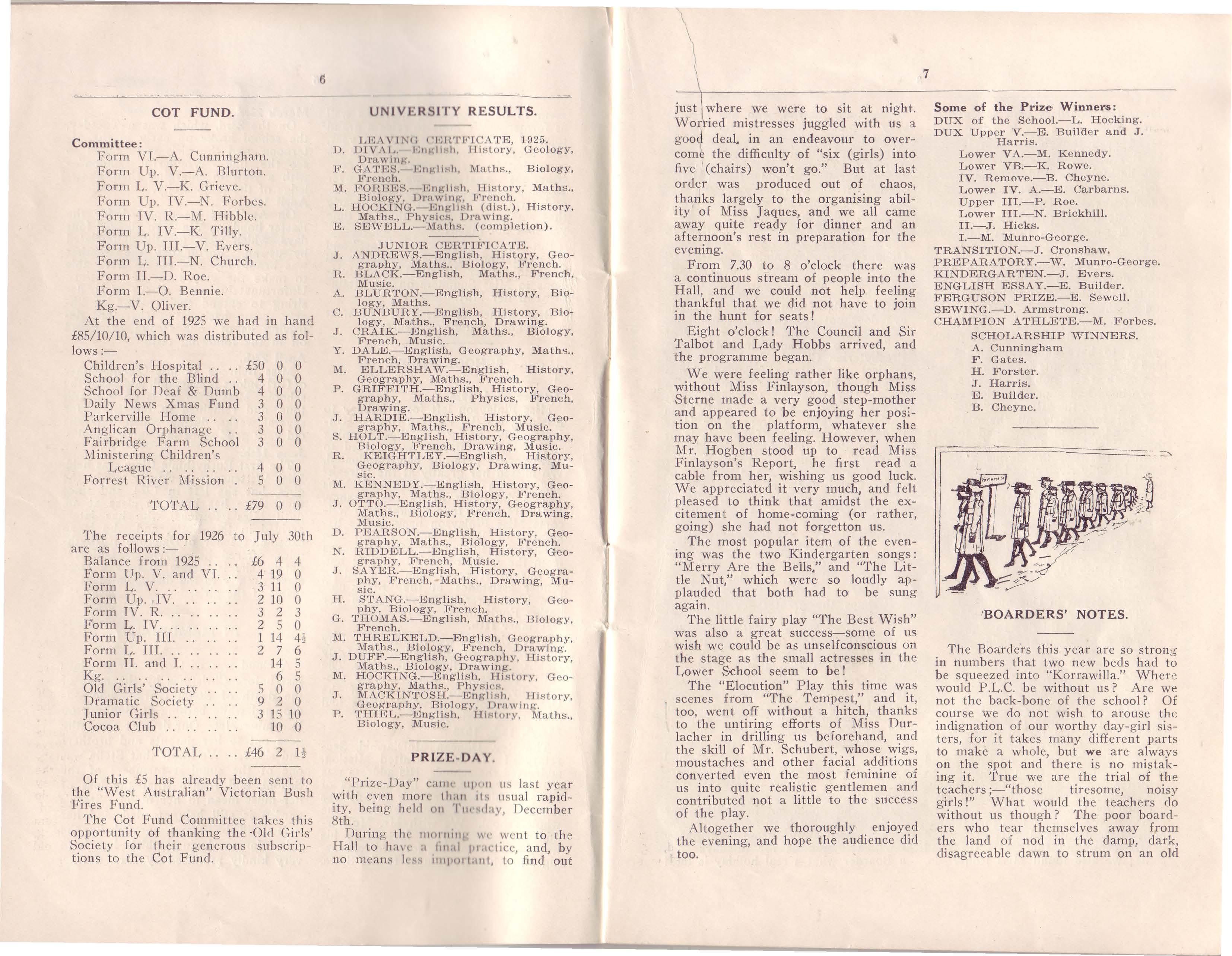 Last prize-day we were ho n oured bv the presence of Sir Tal b ot and Hobbs, who distr ibu ted the prizes. The entire programme went off very successfully, even to the songs of the Upper Schoo l, over which there had been some anxiety.