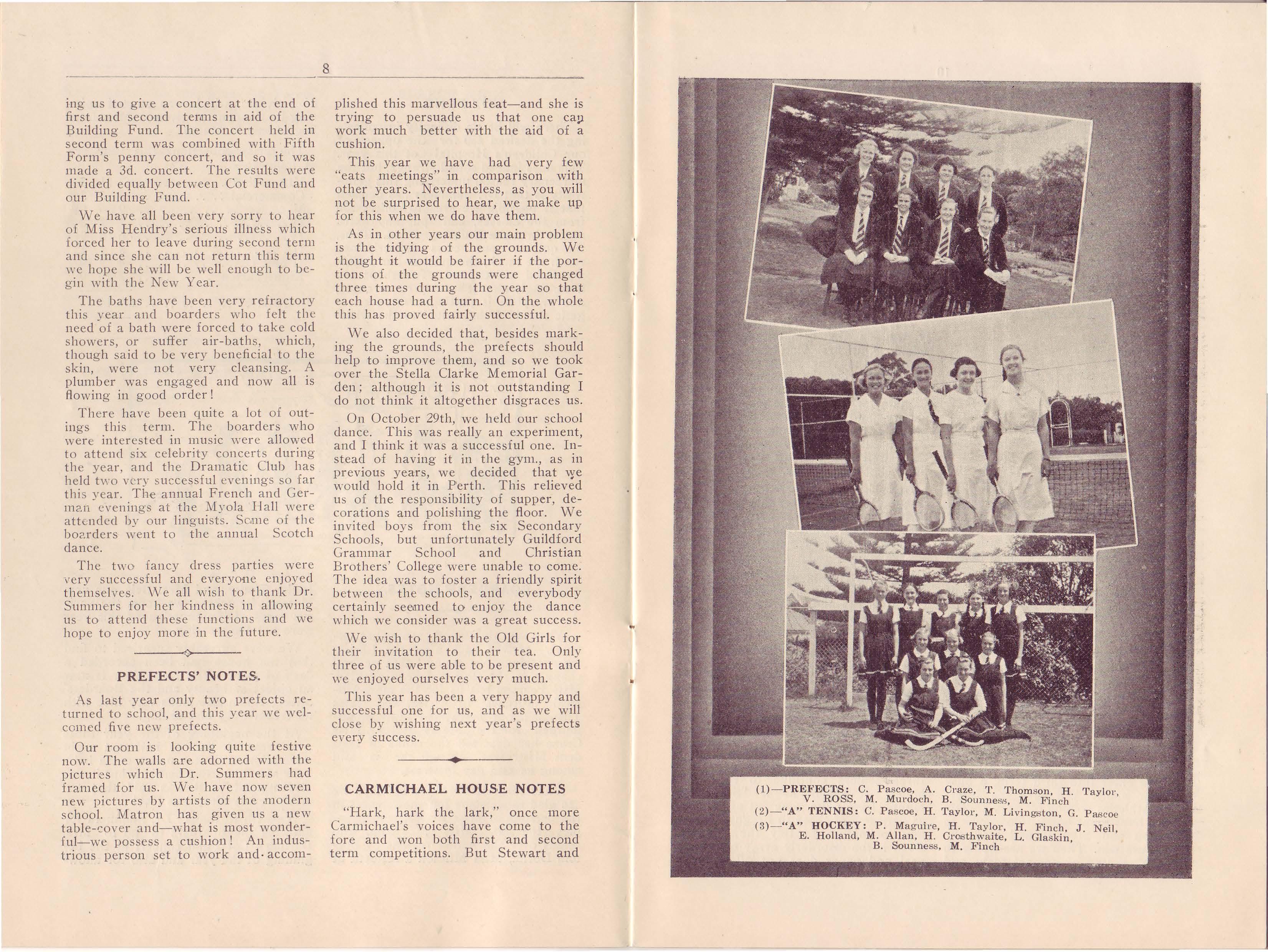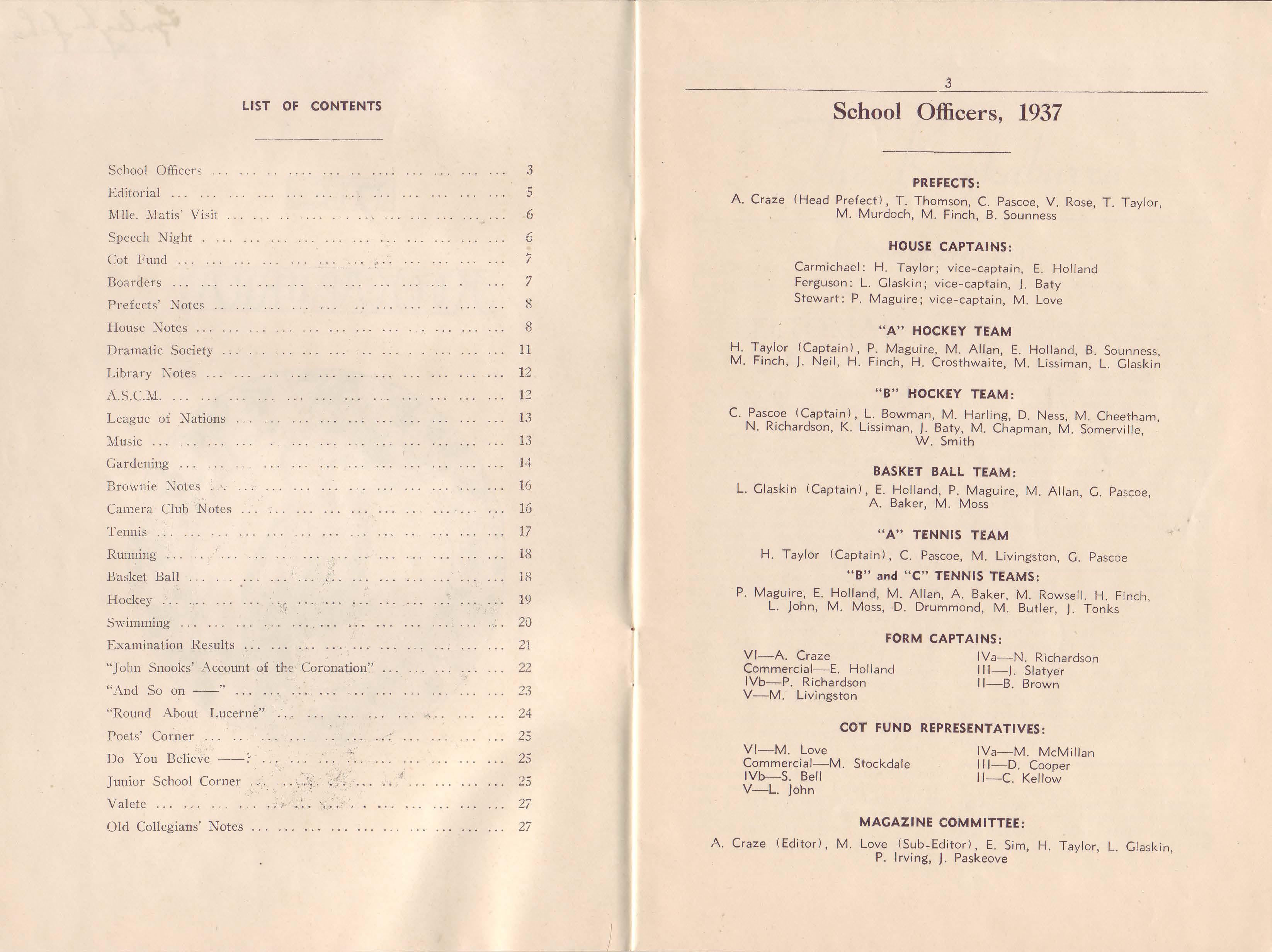 School Officers, 1937 PREFECTS: