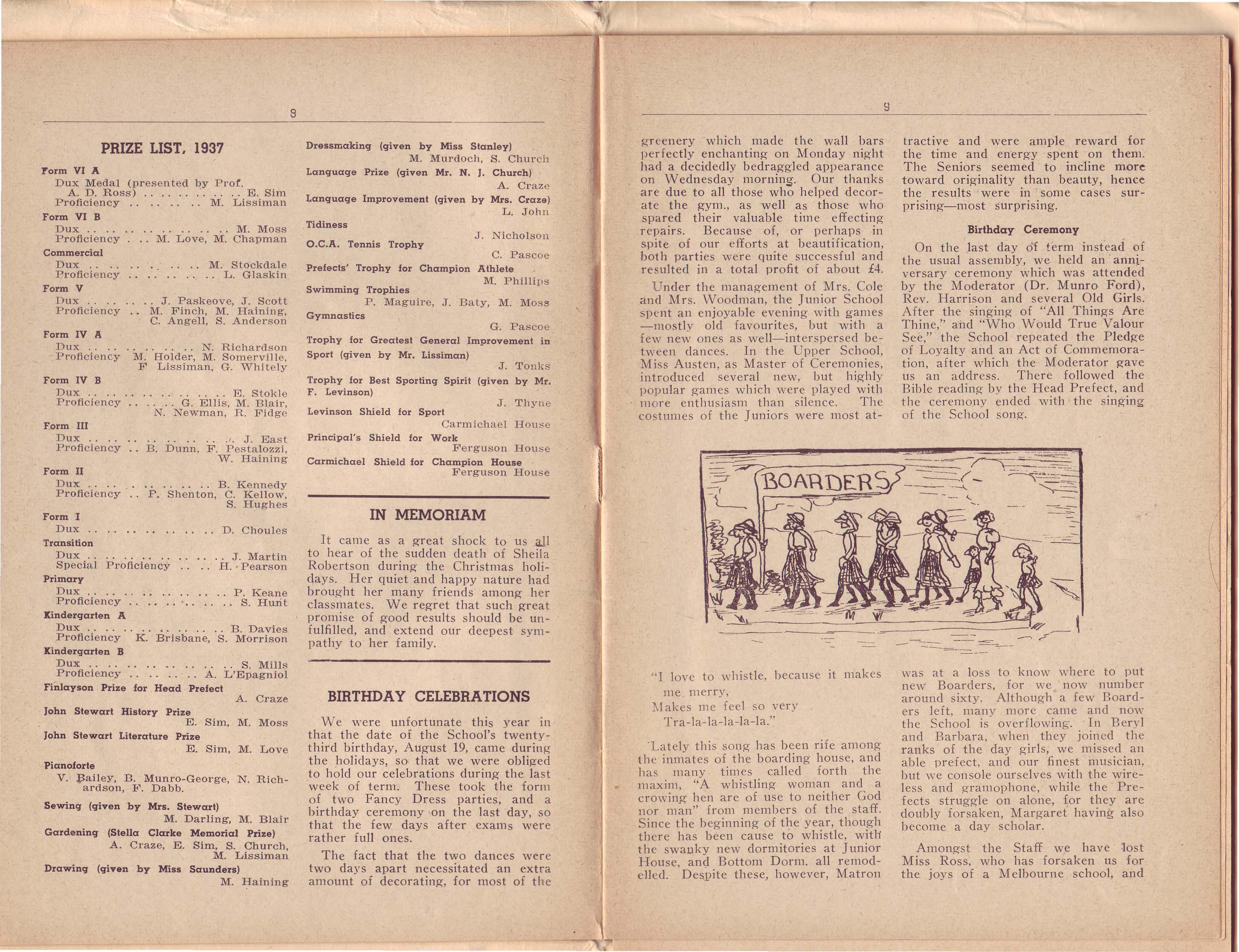 Our school song opened the programme. The prayer and the mode r ator's address followed. Dr. Summers then gave her report on a very successful year. This was followed by an address by the chairman, Dr. D. D. Paton. Then the prizes were presented by Mrs. Cardell-O l iver, whom we wish to thank for visiti ng us.