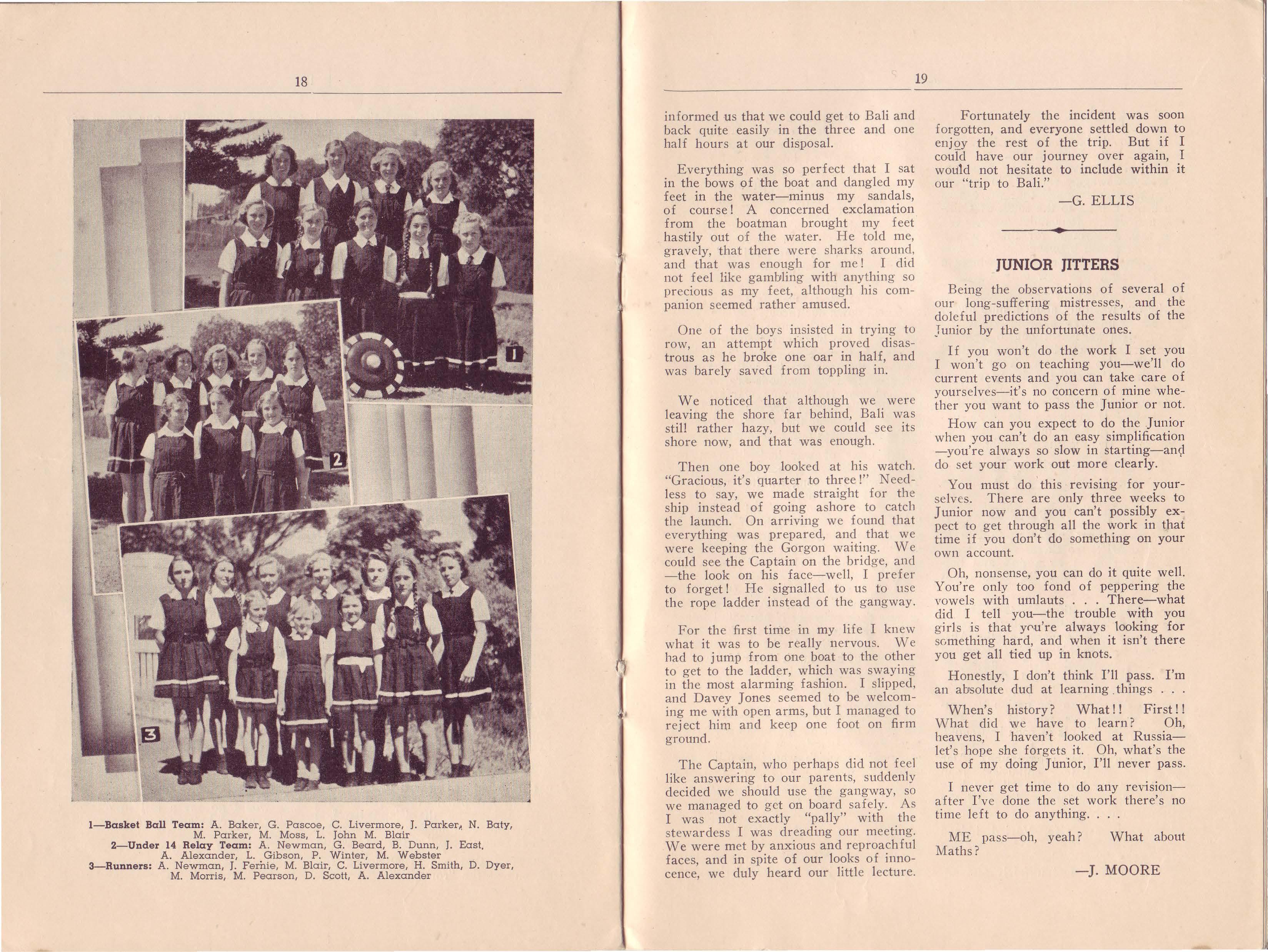 I wish to thank Mrs. Morrison and Miss Hendry for the interest they have shown in the magazine, and also to compliment the Committee on all the energy they have expended in trying to think of new "bright ideas." It was decided that the Senior prize be awarded to Nancy Smith. I particularly wish to thank all the enthusiastic Juniors who contributed articles and regret that we did not have enough space to print more of them.