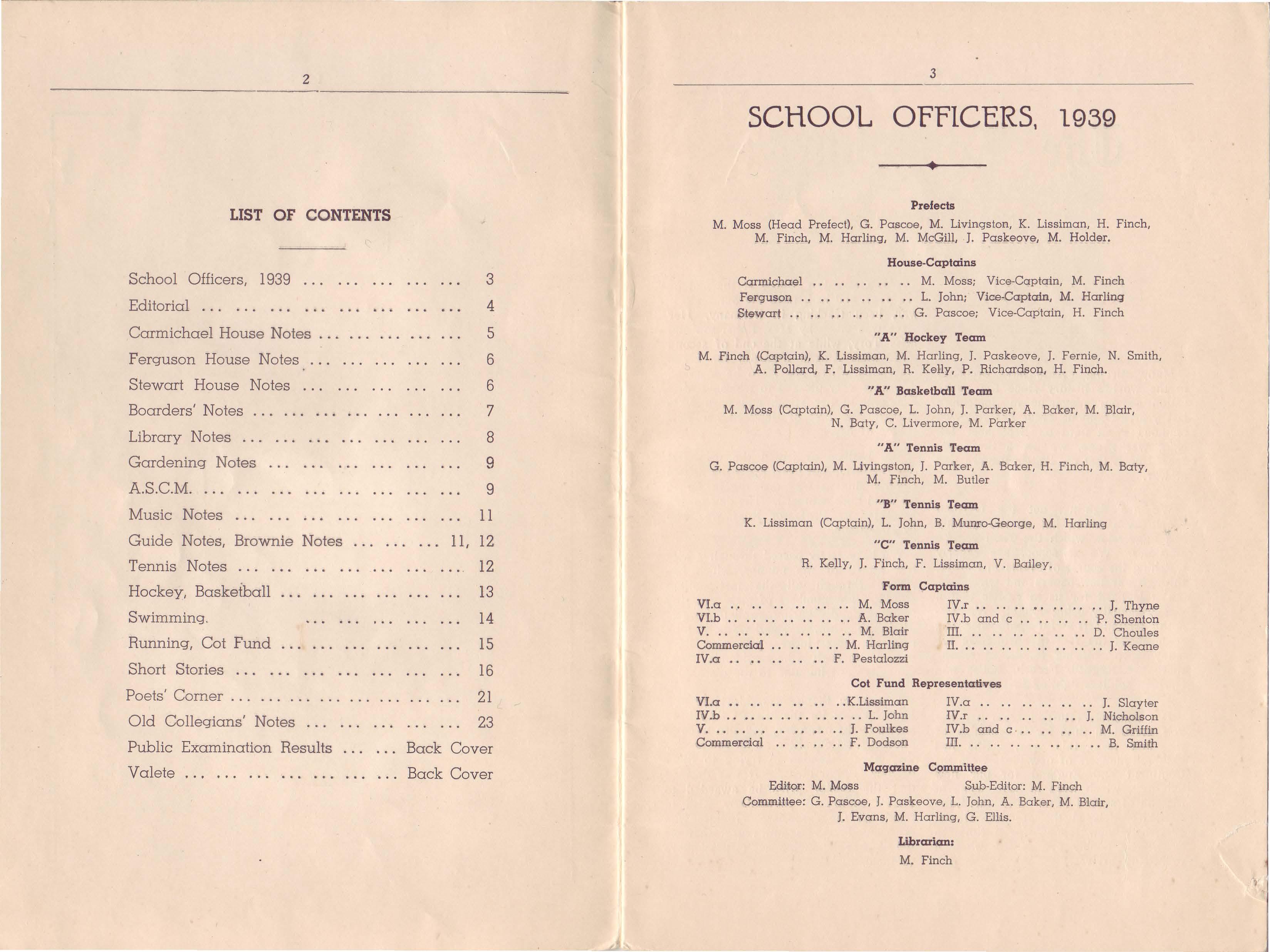 M. Lissiman (1929-38)-Head Prefect 1 9 38; Leaving, 1937; Junior, 1935; Form Captain, 1938; Cot Fund, 1932 a nd 1934 ; Magazine Committee, 1938; " A " Hockey Team, 1937-38.