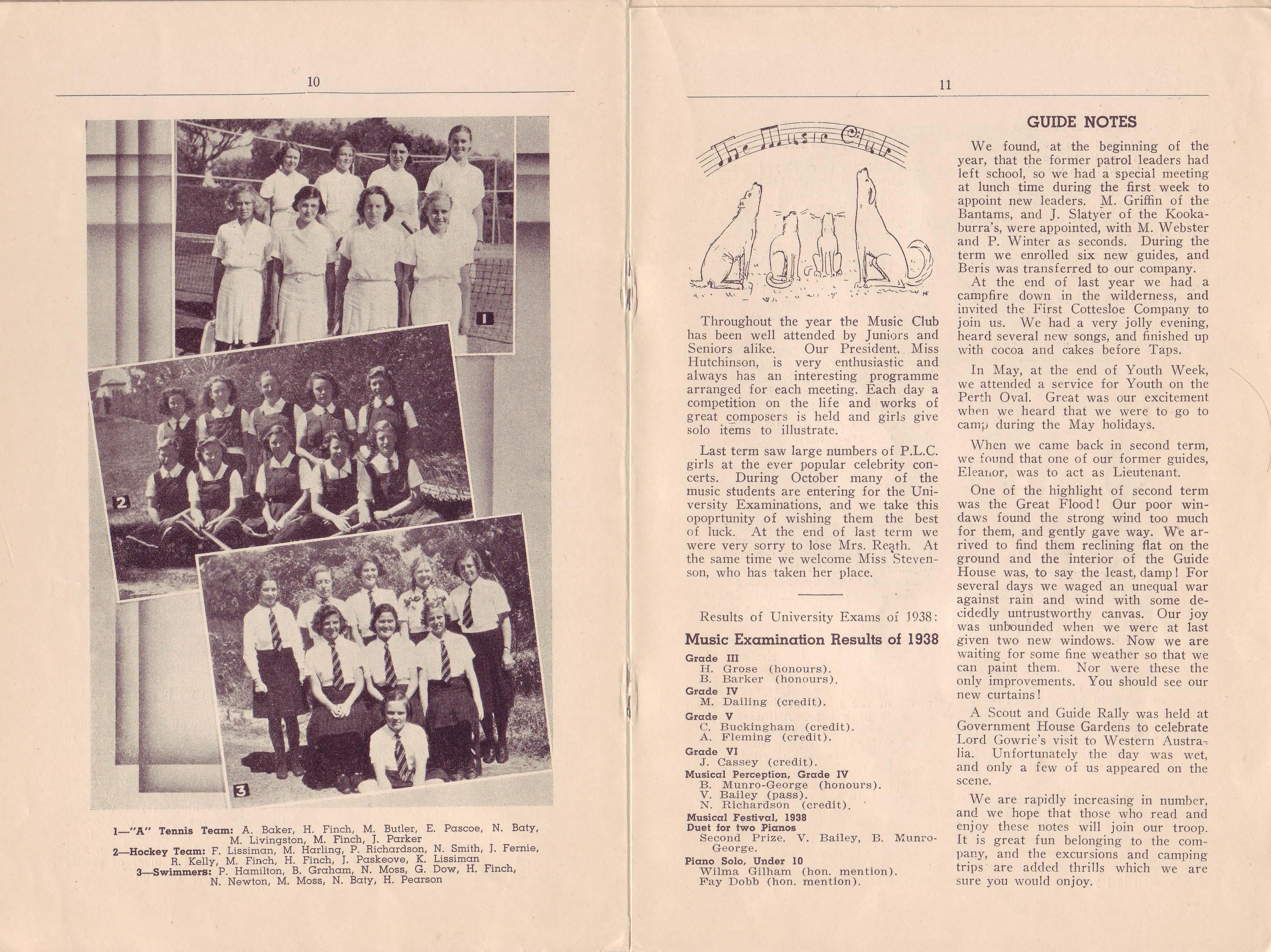 1-"A" Tennis Team: A Baker, H Finch, M. Butler, E. Pascoe, N Baty, M. Livingston, M. Finch, J. Parker