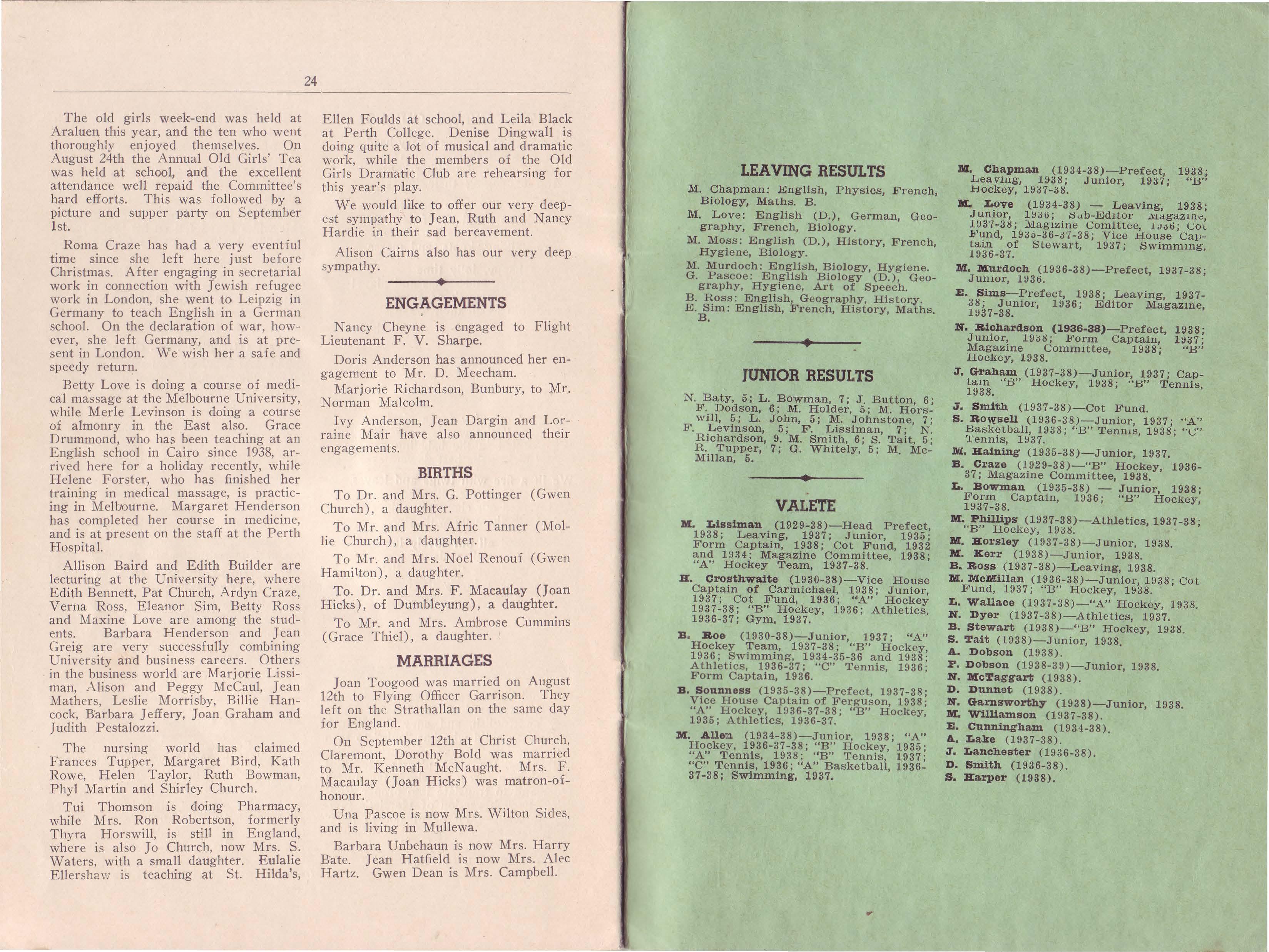 E. Sims-Prefect, 1938; Leaving, 193738; Junwr, Editor Magazine Ba7-38.