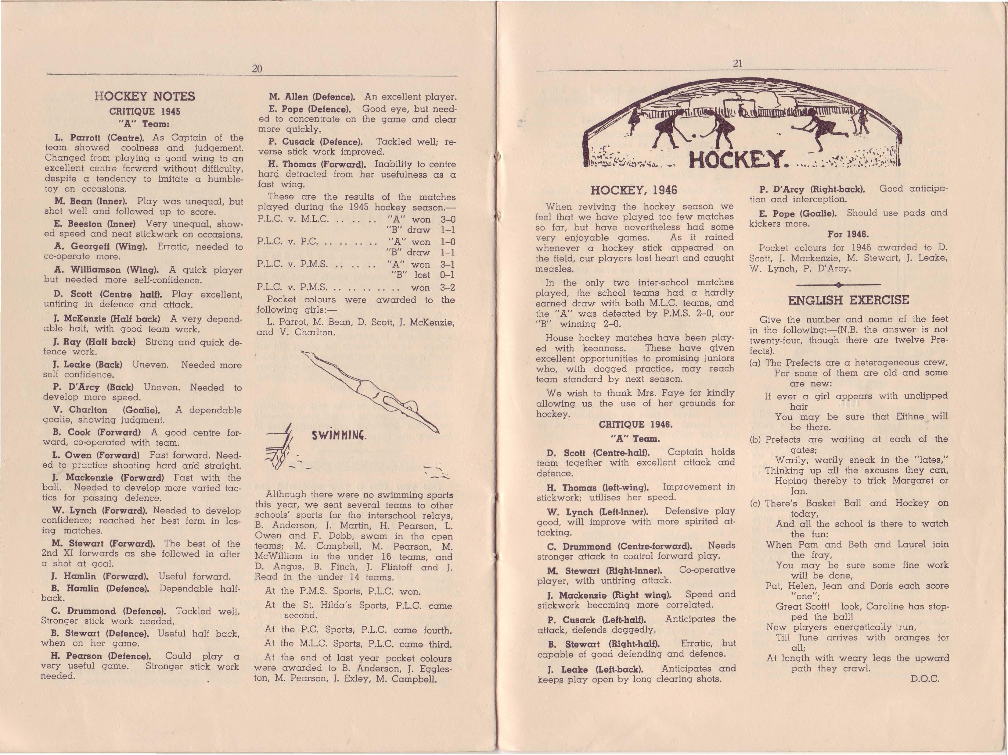 Pocket colours for 1946 awarded to D. Scott, J. Mackenzie, M. Stewart, J. Leake, W. Lynch, P. D'Arcy.