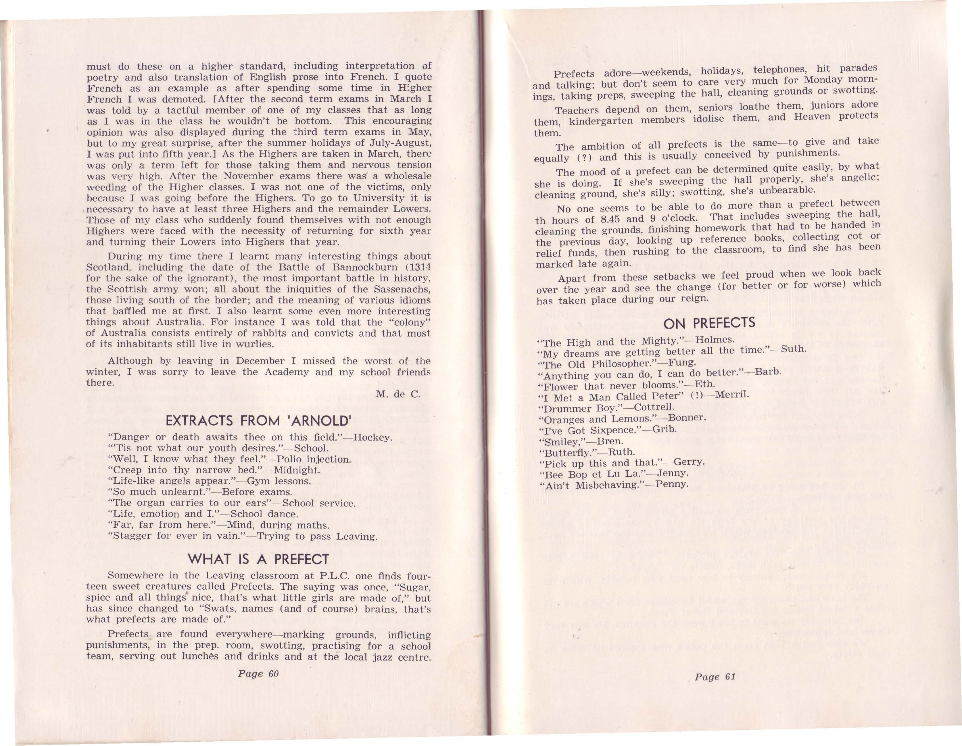 lib lib lib S. Bird A. Thomas , E. Thorn Holmes (Head Prefect), A_ngus, Barbara Baird, Ruth Boundy, Jennifer Cottrell, D1ane Gnbble, Penny Kerr Brenda Sloane , Valerie Sutherland, Ethne Thon;1as. HOUSE CAPTAINS. Carm·chael: Jennifer Stamland. Ferguson: Geraldine Hill. McNeil: Merilyn Waddell. Stewart: Rosemary Banner. s b Ed't J MAGAZINE _B. Sloane; u - l or, · Wilwn; Committee, J. Staniland , D. Grabole, M. Waddell, D. Chase, S Johnston , J Stoddart, V. Uren, M LIBRARIANS. - A. McCooke, E. Baker.