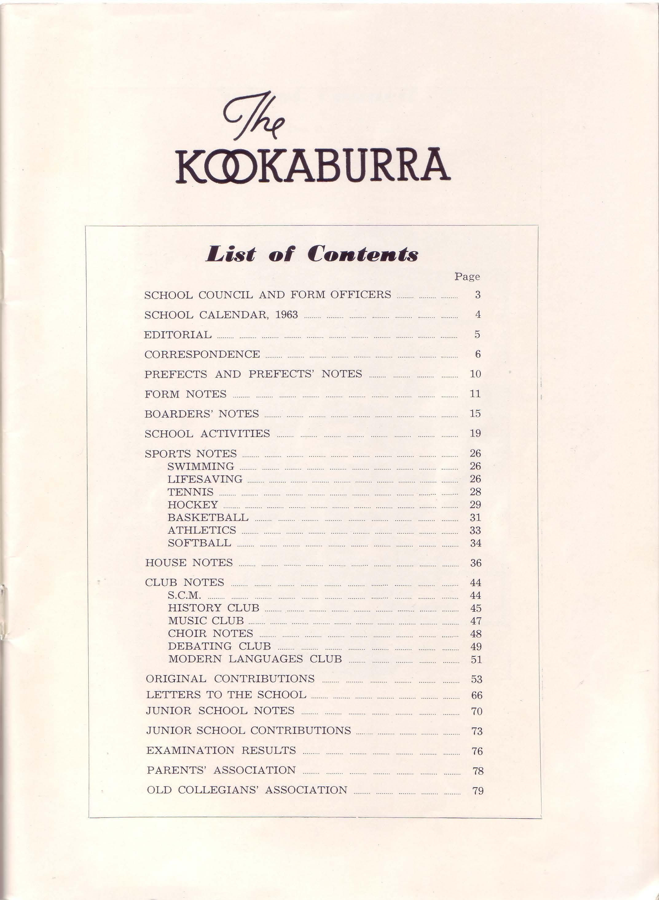 As the "Kookaburra" went to press i.n November 1963 our second fete was underway. A bright sunny day on November 9 was the culmination of an enormous amount of preparation, especially by the mothers. The fete was a wonderful success and resulted in a sum of £1800 net being raised, which sum more than paid off the amount owing on the swimming pool. For the first time , the Association's bank account registered a credit balance- about £900 and the committee was encouraged to provide some other amenities for the college- fiction books to the value of £200 were supplied, a school television set and a taperecorder were purchased. The TV set is used for telecasts of Leaving Mathematics, Physics, French, Junior School, Physiology and Hygiene, and entertainment of the Boarders at weekends. The taperecorder is used for language and speech instruction. The Committee has received expressions of warm appreciation for these contributions to the College. The cost of buses for sports teams has been met from our funds.