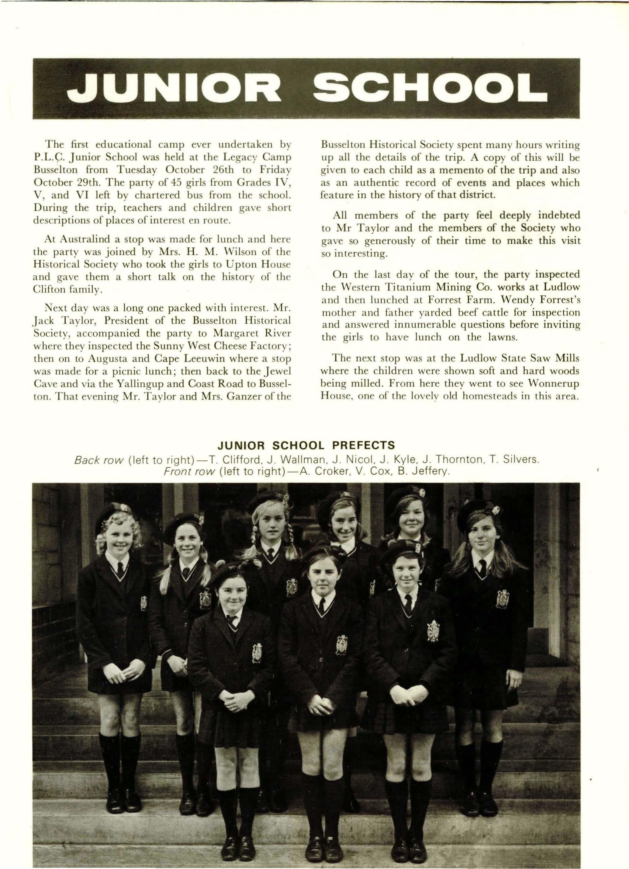 17 First Year debates between P.L.C. and Aquinas held at the home of Miss Bennett. Fourth and Fifth Year boarders attended a Passing Out dance at Leeuwin.