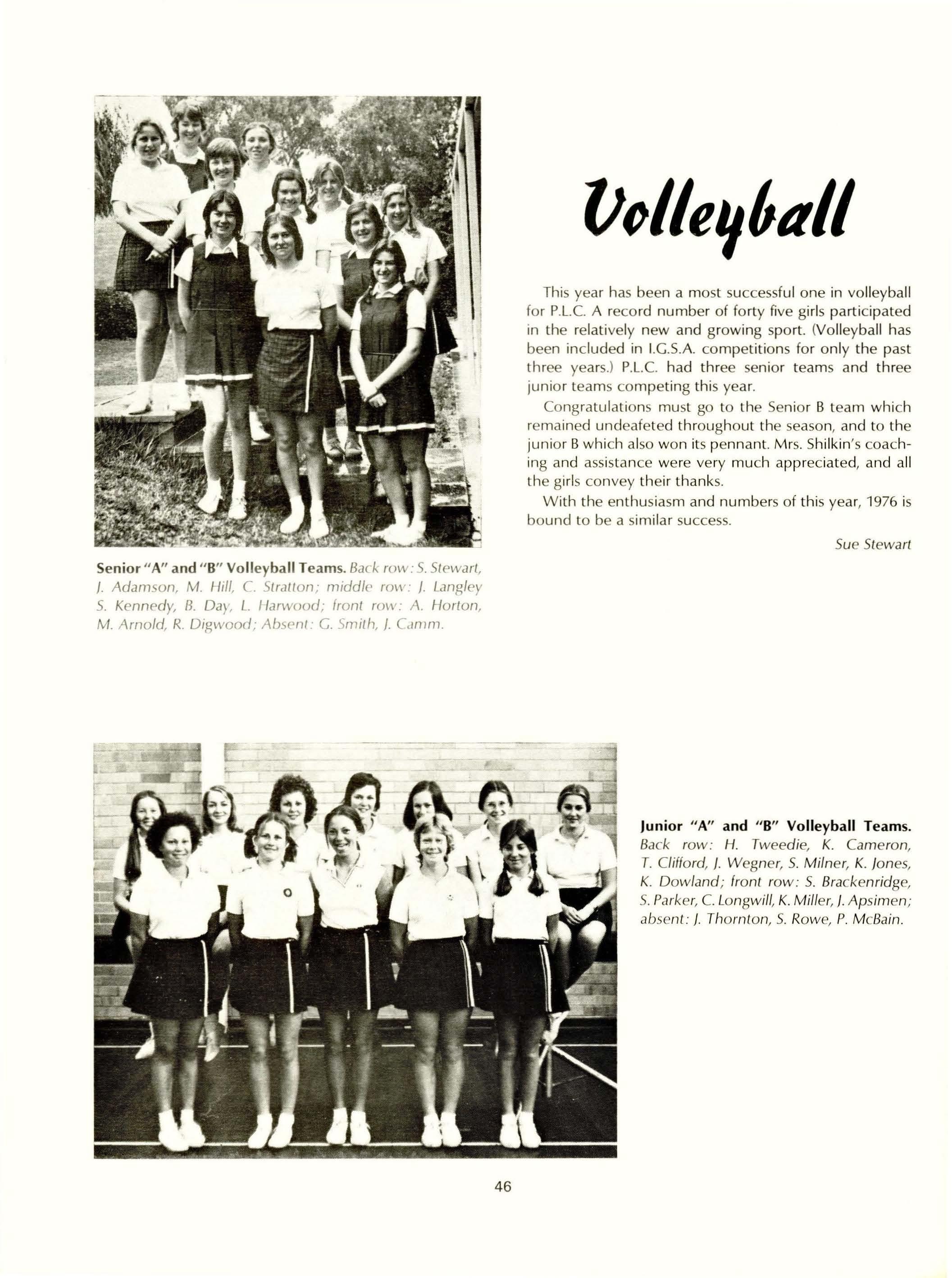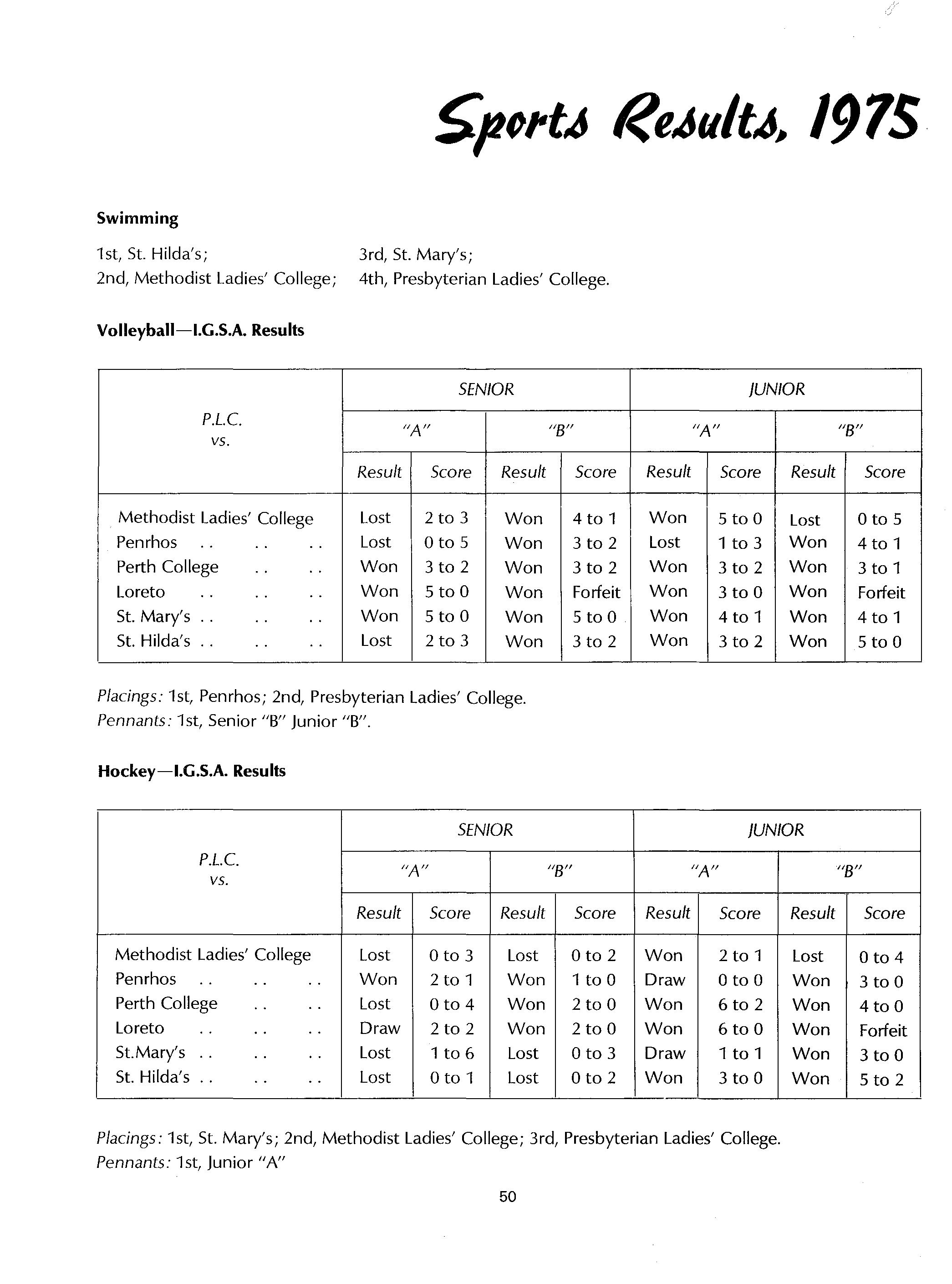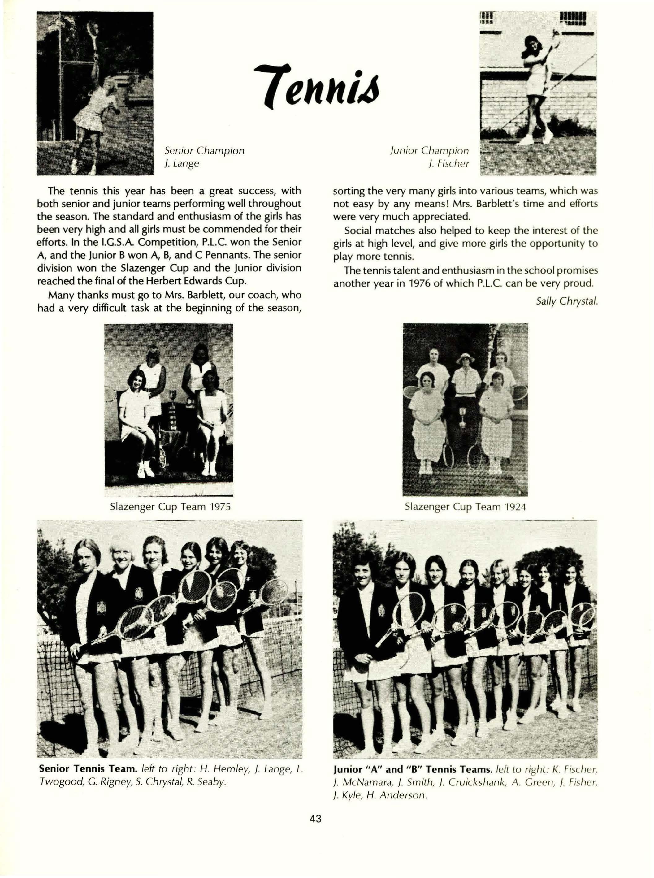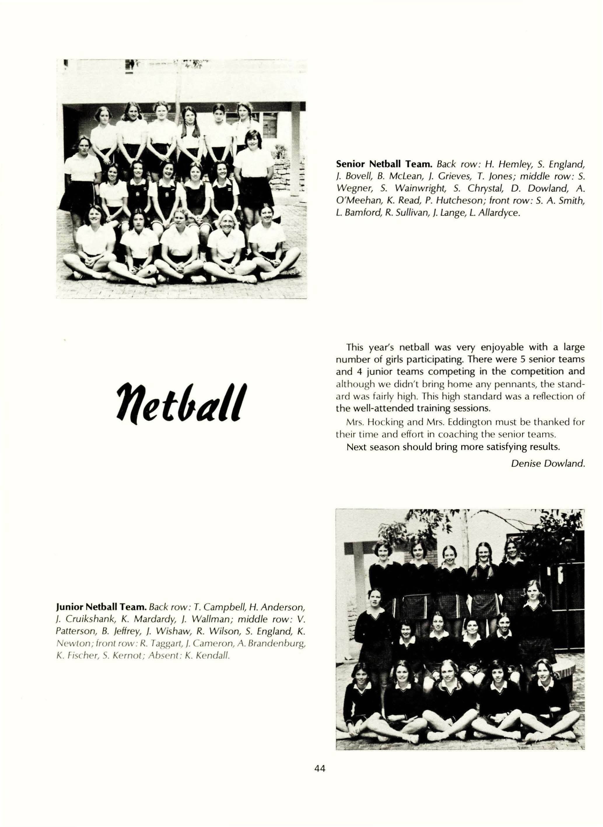 In the other fields of sport, hockey, softball, tennis, volley-ball, badminton, netball, basketball and gym, we have also done reasonably well. For the success in these fields we need to thank Raema Seaby, who has been a fabulous sports captain, Lindy Twogood,