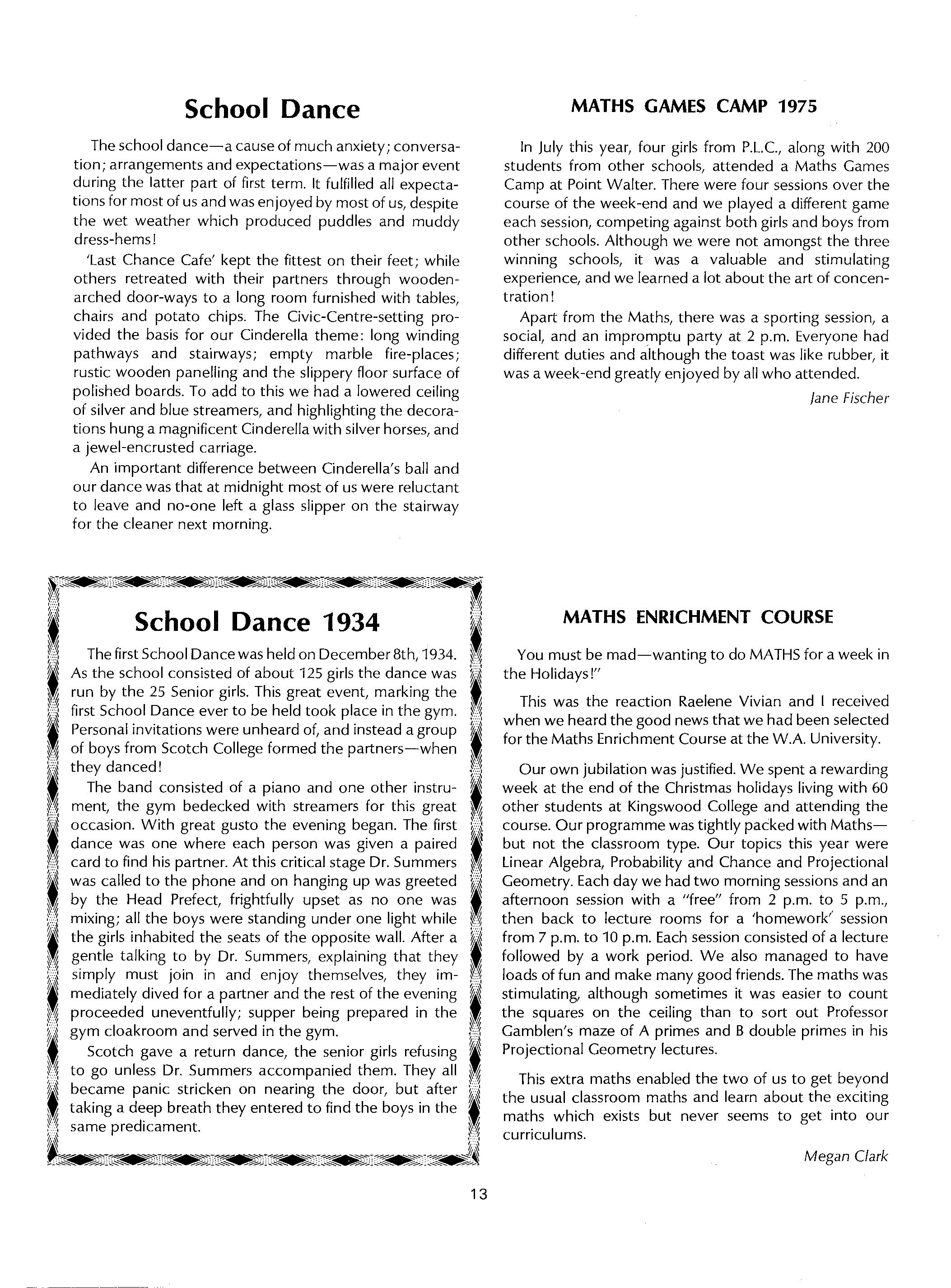 The school dance-a cause of much anxiety; conversation; arrangements and expectations-was a major event during the latter part of first term. It fulfilled all expectations for most of us and was en joyed by most of us, despite the wet weather which produced puddles and muddy dress-hems!