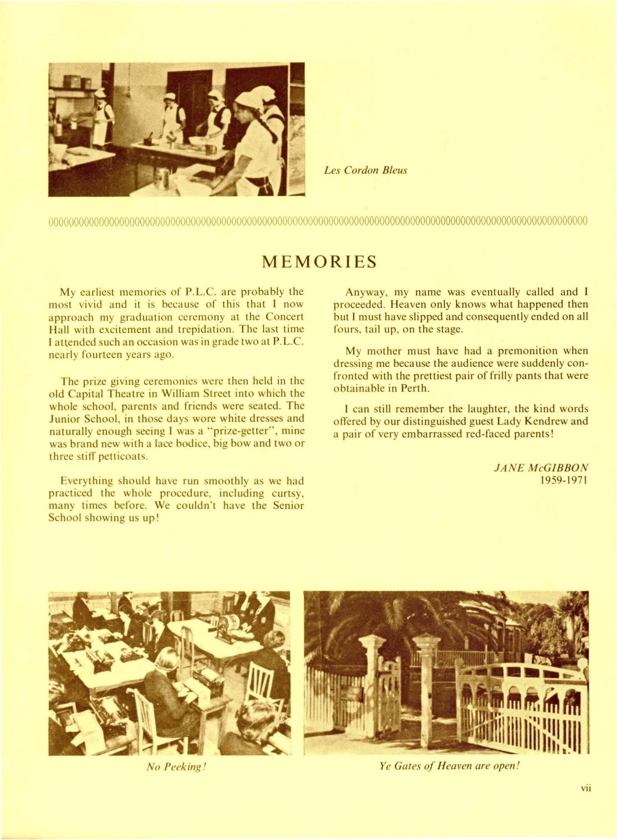 Bronwyn then concluded the formalities of the night with a vote of thanks and appreciation. And, following the hymn known well to all P.L.C girls-past and present'Lord, Dismiss Us with Thy Blessing', the masses adjourned to the Greek Theatre for supper.