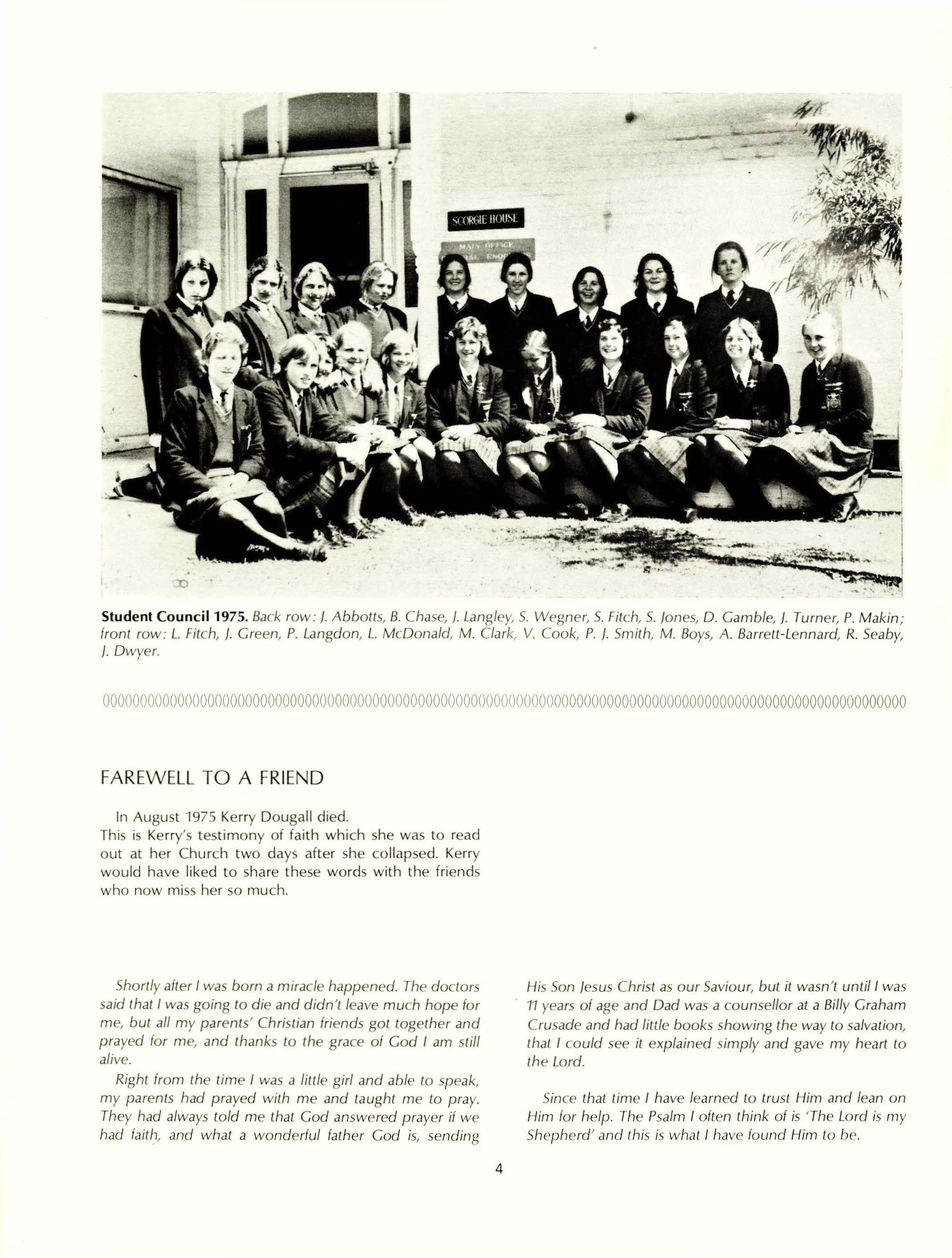 In August 1975 Kerry Dougall died. This is Kerry's testimony of faith which she was to read out at her Church two days after she collapsed. Kerry would have liked to share these words with the friends who now miss her so much.