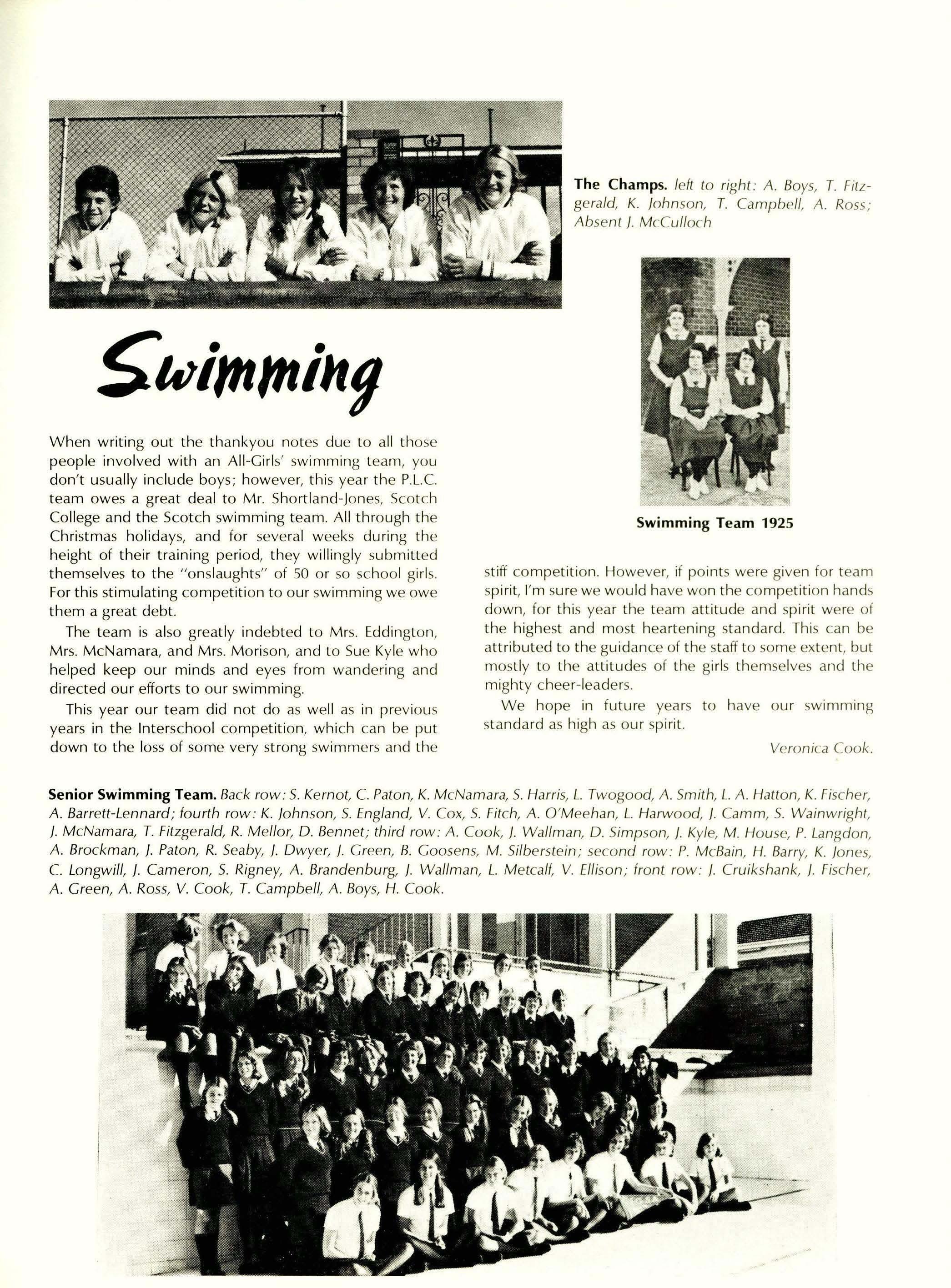 We won the swimming sports owing to a great effort at standards, and the great leadership of Trish Langdon.