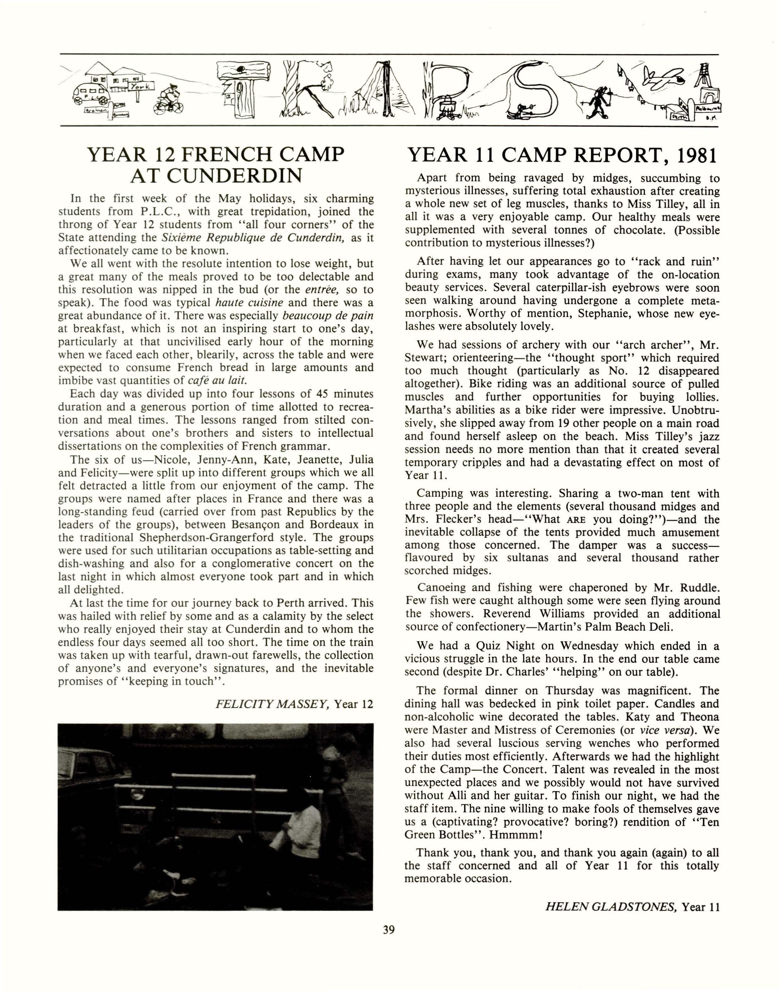 In writing this report, I am keeping my fingers crossed that you will not leave me until the end. (I realise the photographs may be off-putting!) To those of you returning next year, please take care of P .L.C. for us! Best of luck to the new Student officials. Remember you are only human. To my fellow Year l2s-thank you for making life interesting! May you have luck, happiness and a safe journey along whatever path you choose to take.