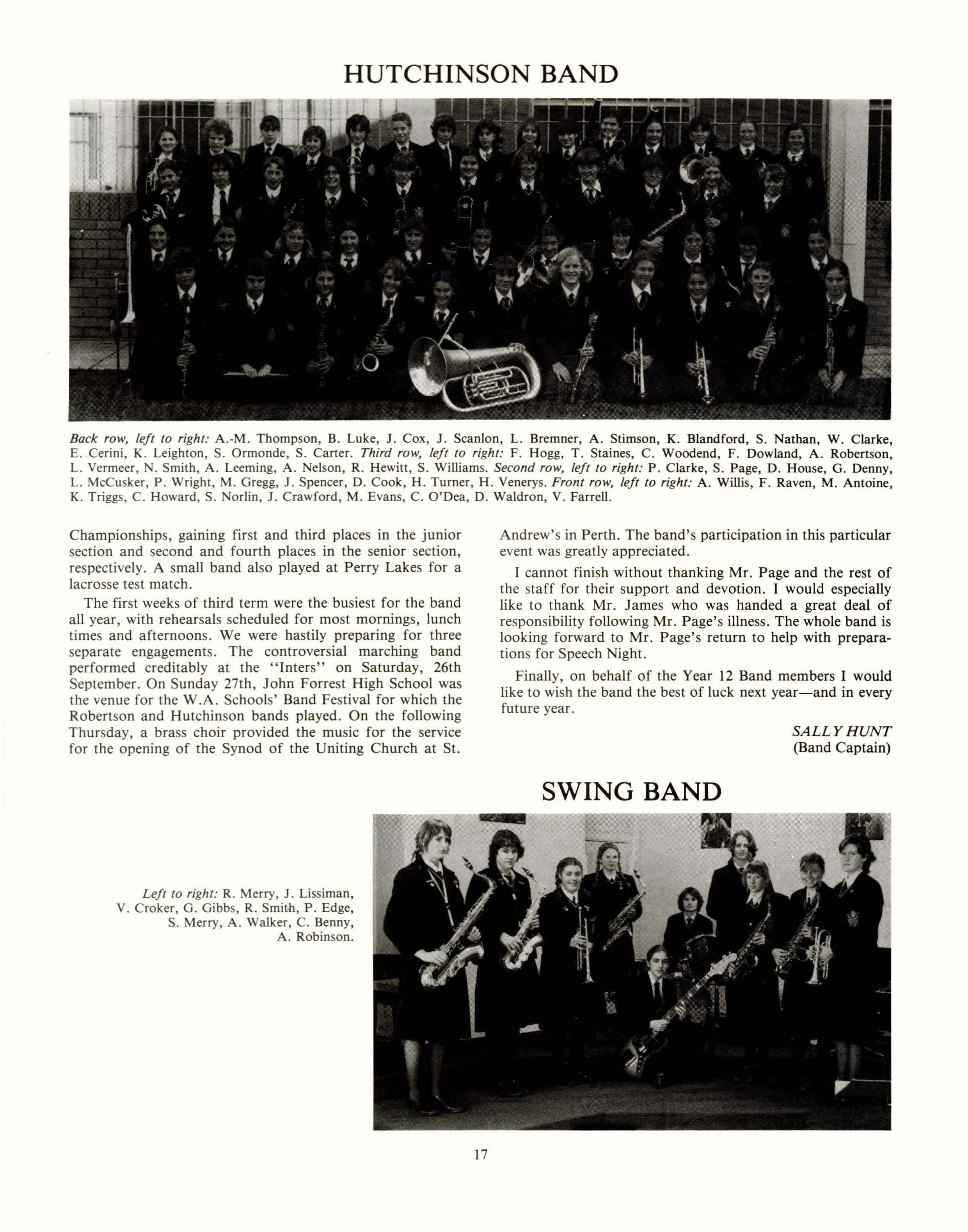 Magazines were received from the following schools: Anglican Grammar School, Essenden; Trinity College; . Pymble Ladies' College; Scotch College; John XXIII College; Hale School; Christ Church Grammar School; St. Mary's Church of England Girls' School; Guildford Grammar School; St. Hilda's Church of England Girls' School; Perth College; Penrhos College. We apologisefor any possible omissions.