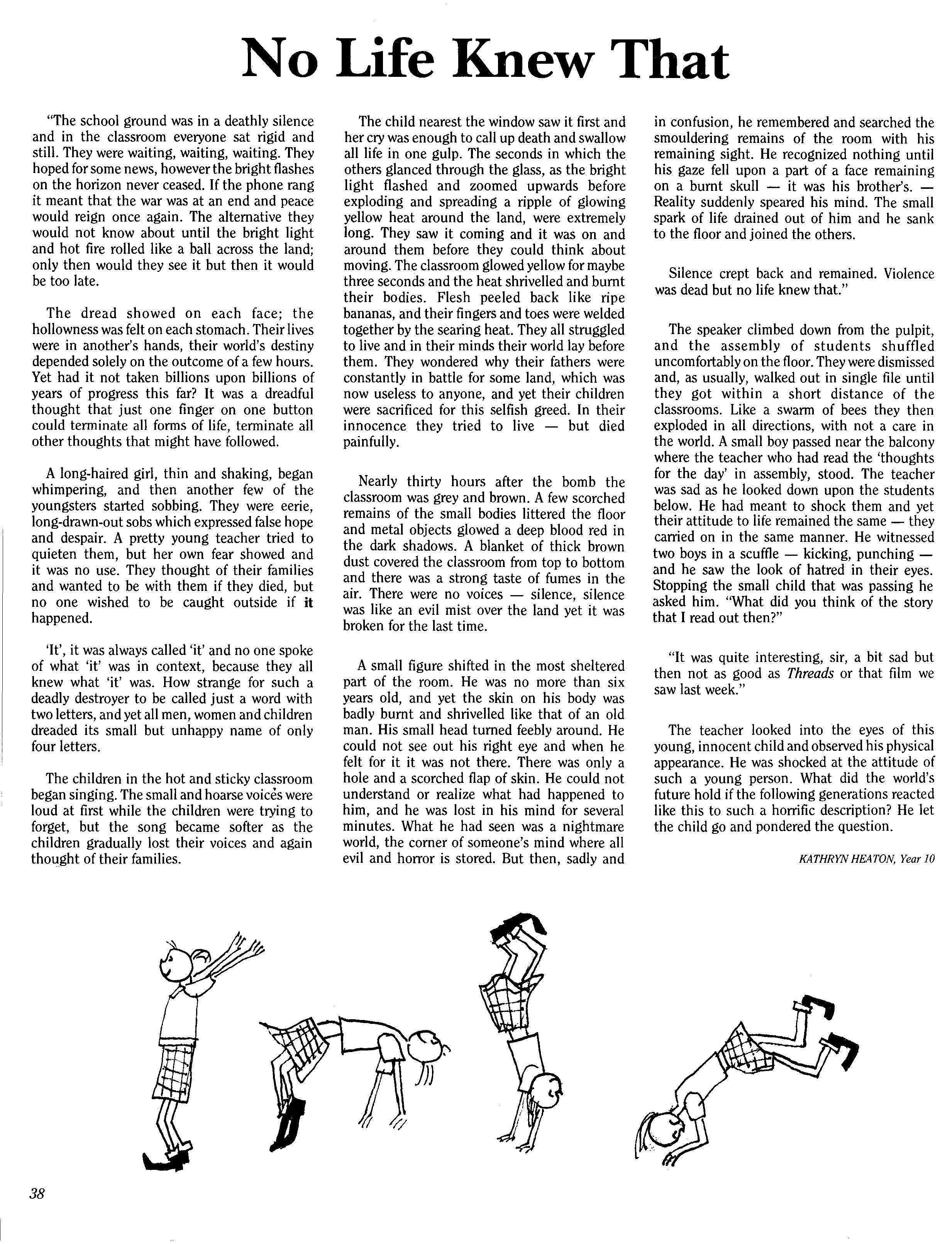During 1986 PLC students participated in the project of writing "letters for peace" to world leaders, a competition organized for school children in this Year of Peace. The letter-writing stimulated the thinking of the writers, and also of readers, as some of these letters were published in local newspapers.