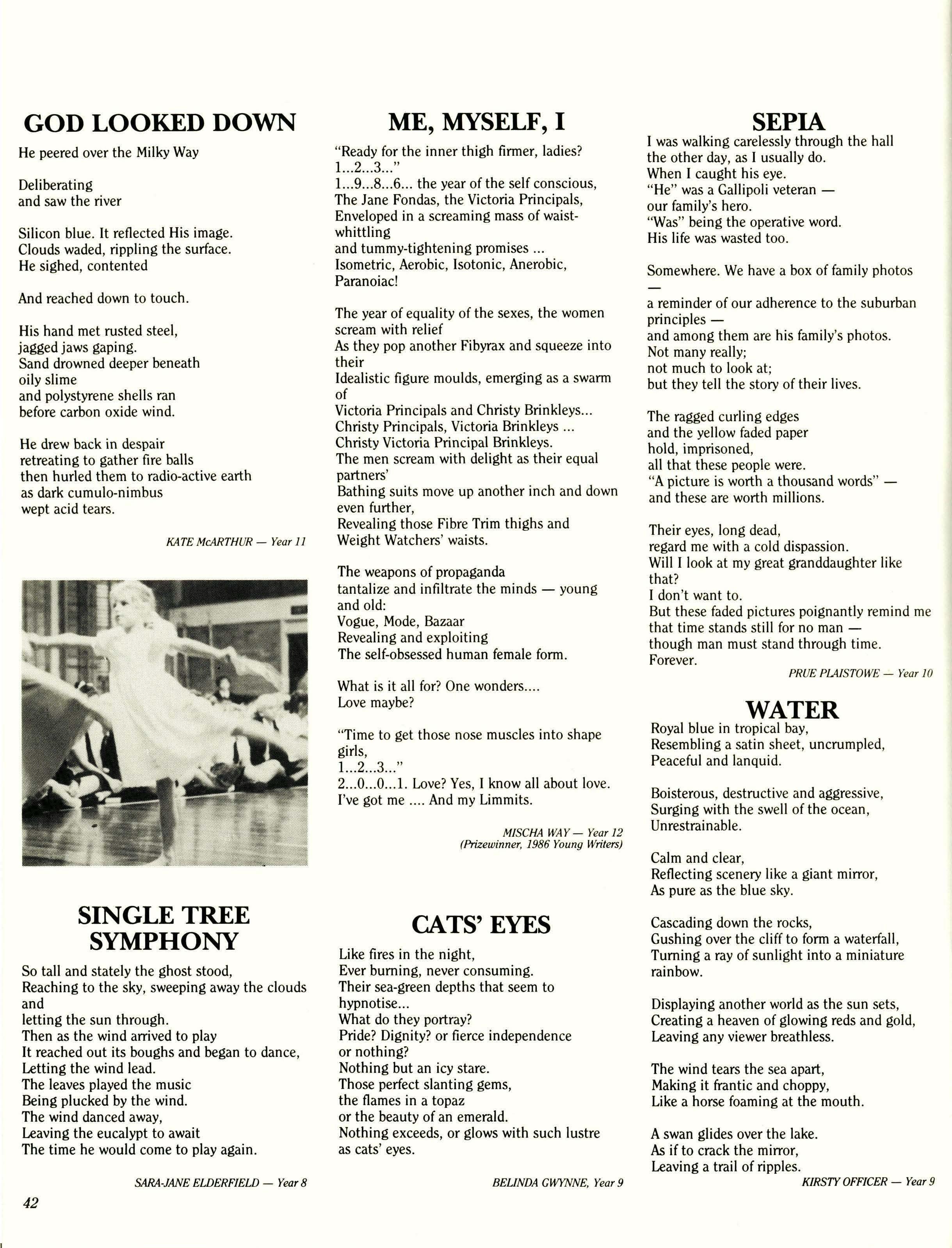 1986: the not-so-aptly-named Year of Peace. Such a title was not so apt a representatton of the year as it revealed itself to P.L.C. where it was in fact 1986: the Year of the Evaluation Committee, the Year of the implementation of the Beazley and MacGaw reports, and finally, the Year of T.E.E. for all of us in Year Twelve.