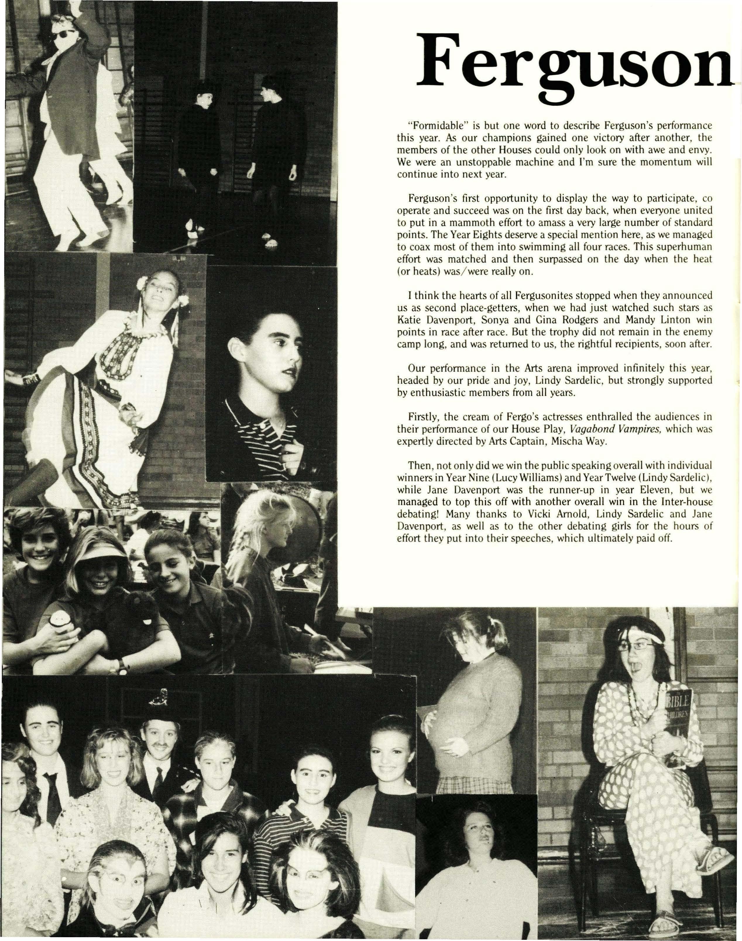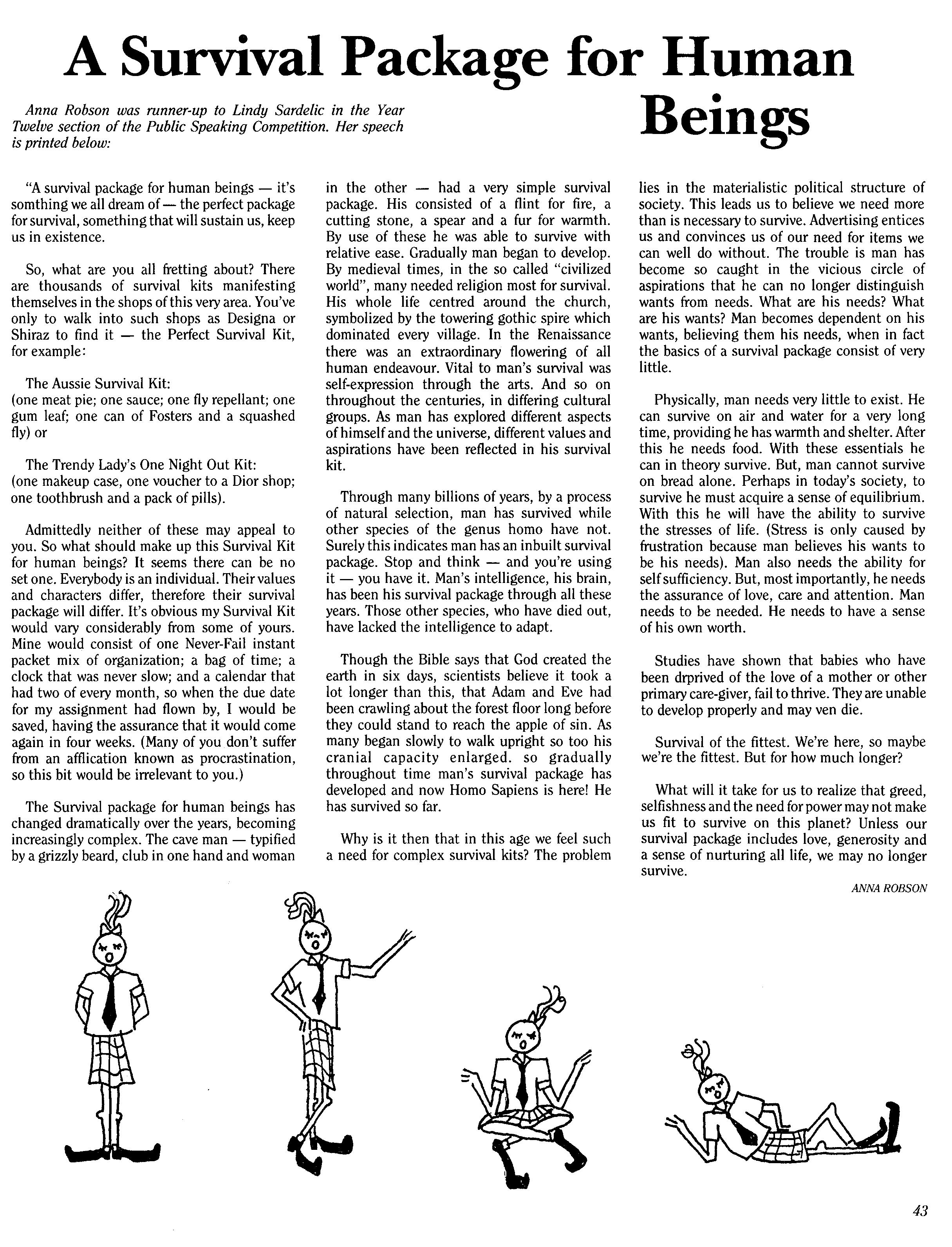 Of course there have been times when I though I would not survive the year, but the willing support of my parents and my closest friends has made the task much easier. I must thank the 1986 Boarding House PrefectsNyree Muir, Kathryn and Robyn White, Anthea Clarke, Lisa Newing and Anna Coward - for all their help.