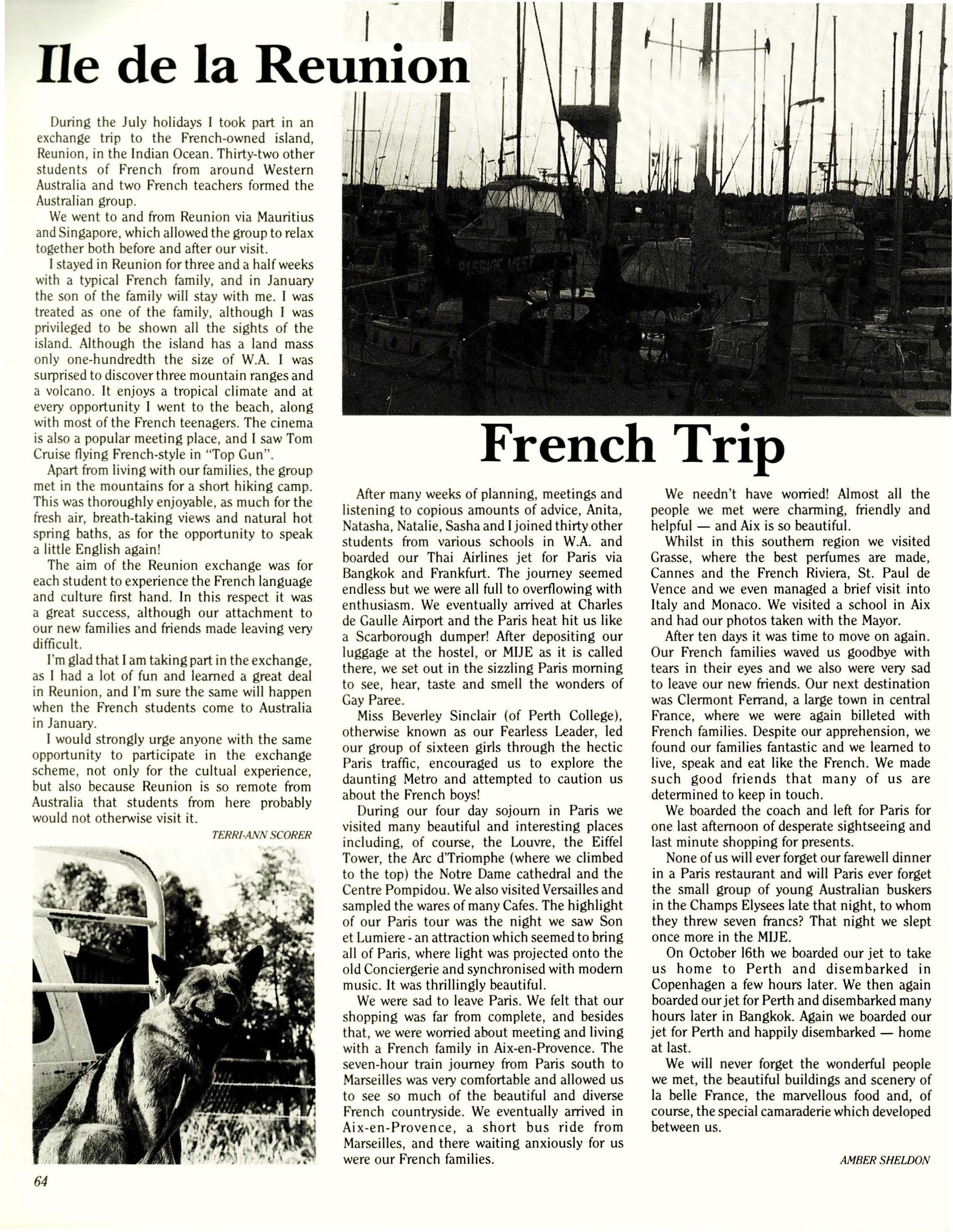 Our Head Boarder, Debbie King and Boarding House Prefects have been most helpful and understanding towards us and have shown and explained to us what has to be done. We wish them every success next year.