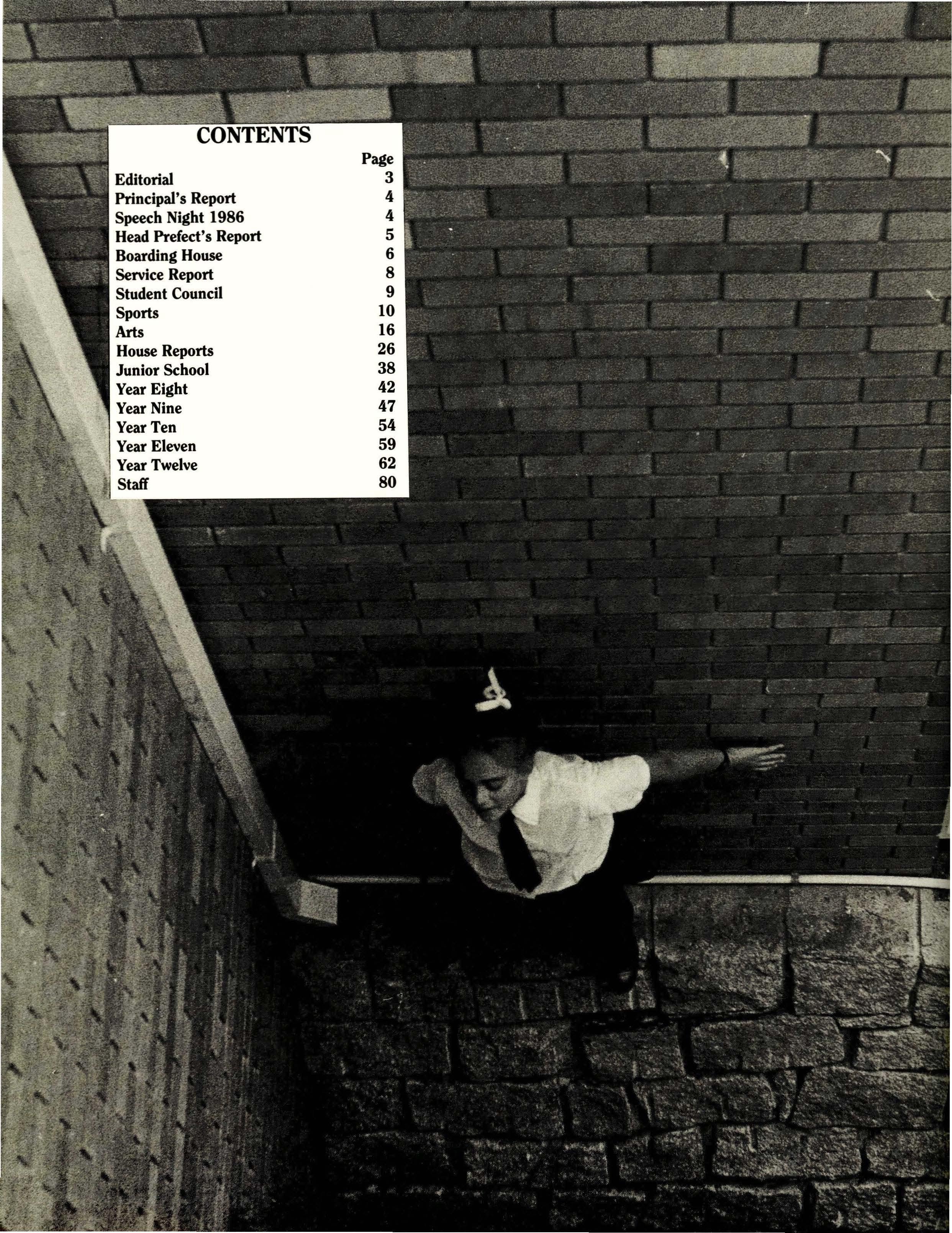 The year of 1987 has been one of looking to the past, being actively engaged in the present and looking towards the future. There has been a re-drafting of the School's Aims, a revision of courses, and discussion concerning the needs of the future. In all of this the questions, "What contributions to the community are we making? What qualities and what achievements are we passing on to future generations?" are relevant.