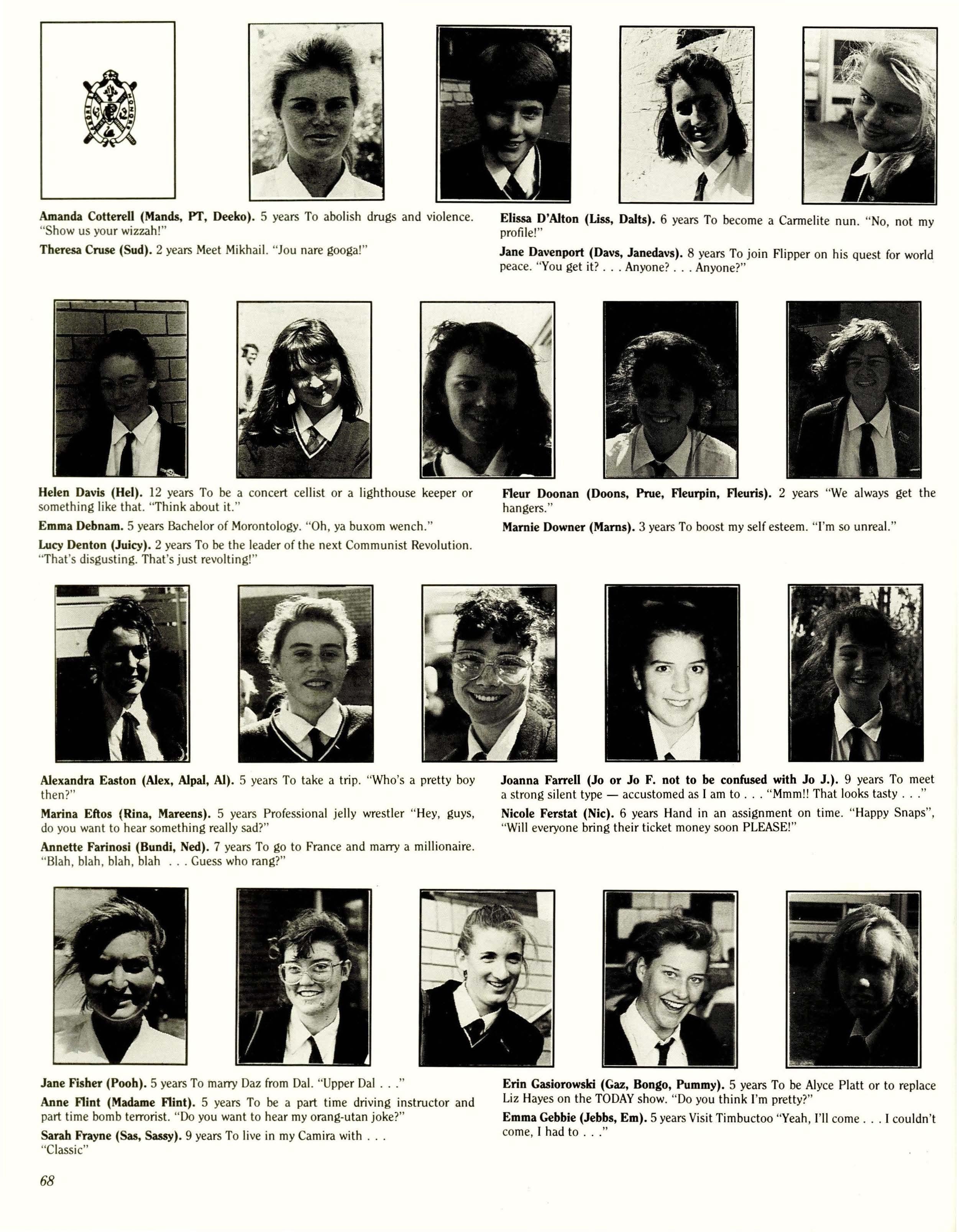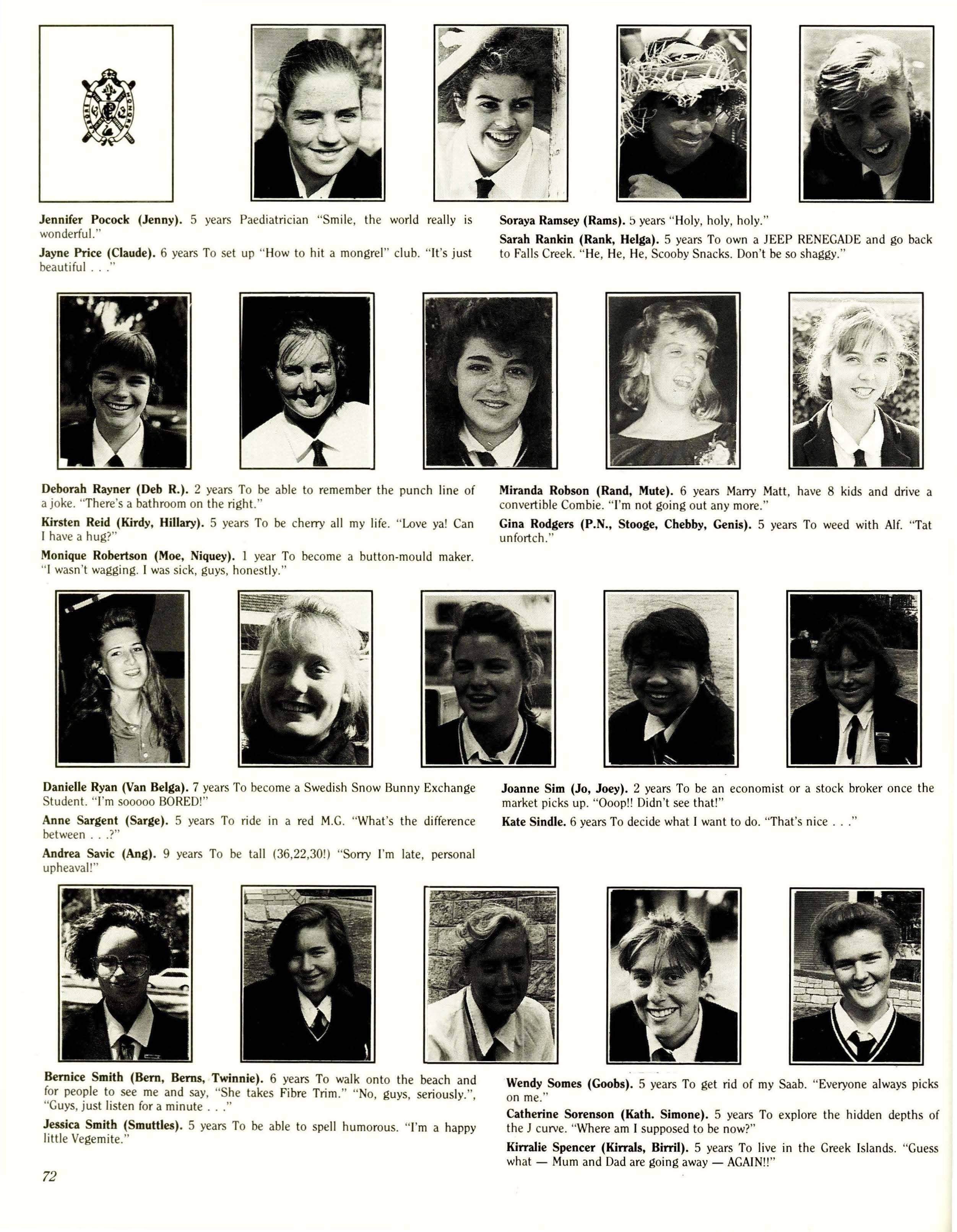 This year saw numbers varying between fourteen and twenty devotees of Years Eleven and Twelve stumble from bed on a Wednesday every fortnight at the same devilish hour to attend Student Council meetings in which subjects ranged from hats to P plates to black or navy winter ribbons to berets.