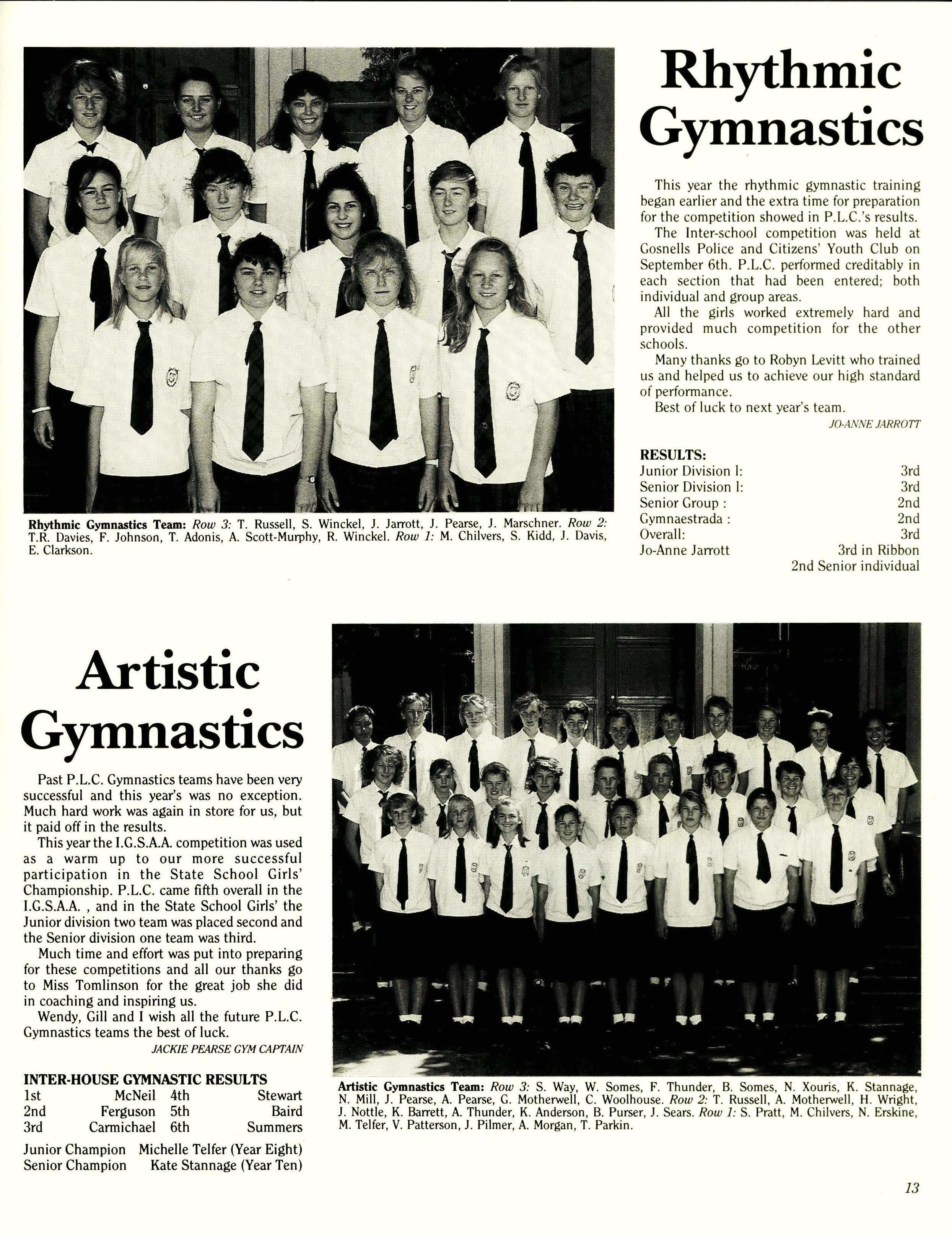 The Artistic Gymnastics and Rhythmic Gymnastics girls performed well in their respective competitions, with many excellent routines being presented. The artistic gymnasts gained fifth place at the IGSSA Competition and third place in the State Schoolgirls' Competition. The rhythmic gymnasts gained third place in the State Schoolgirls' Competition. Well done to all competitors.