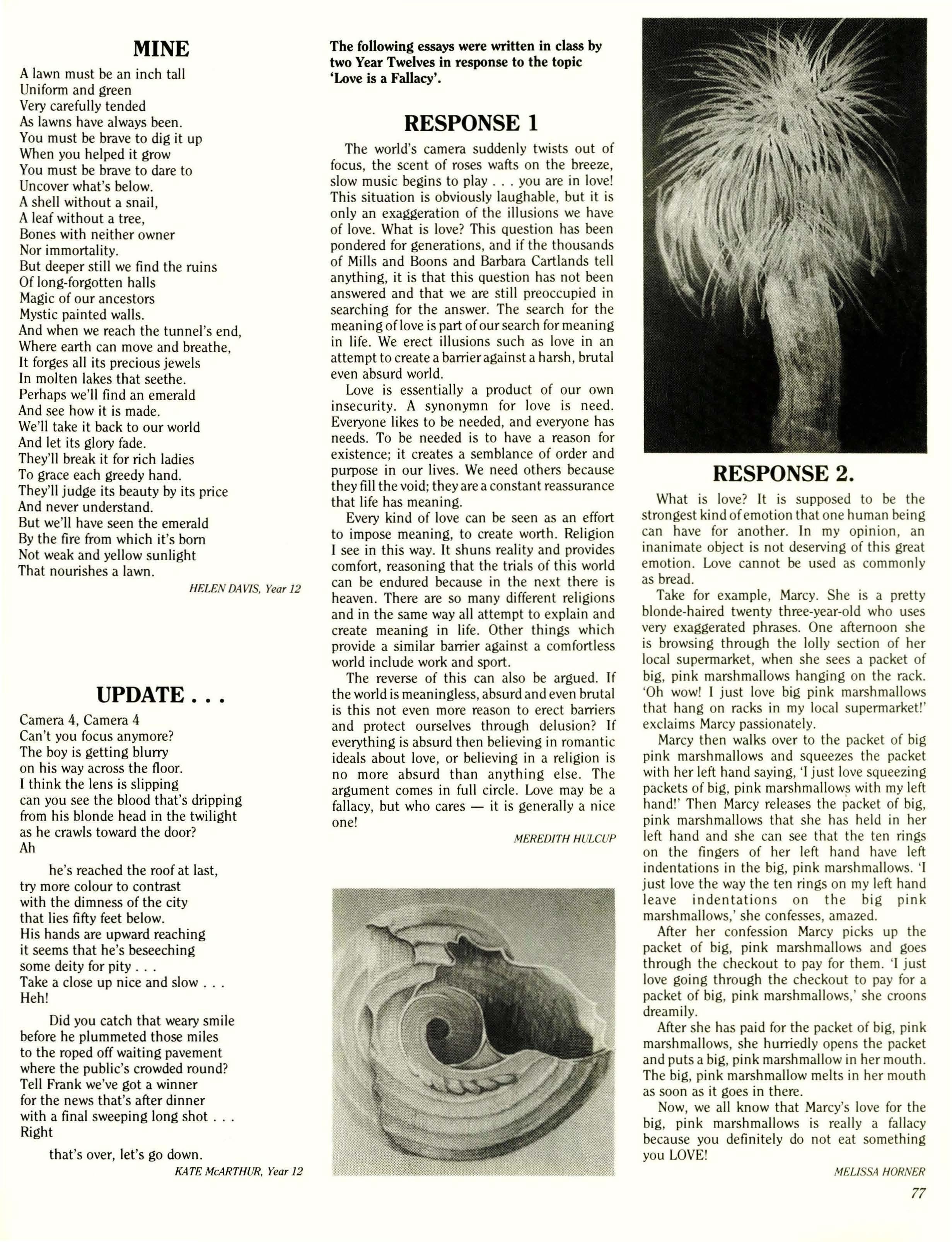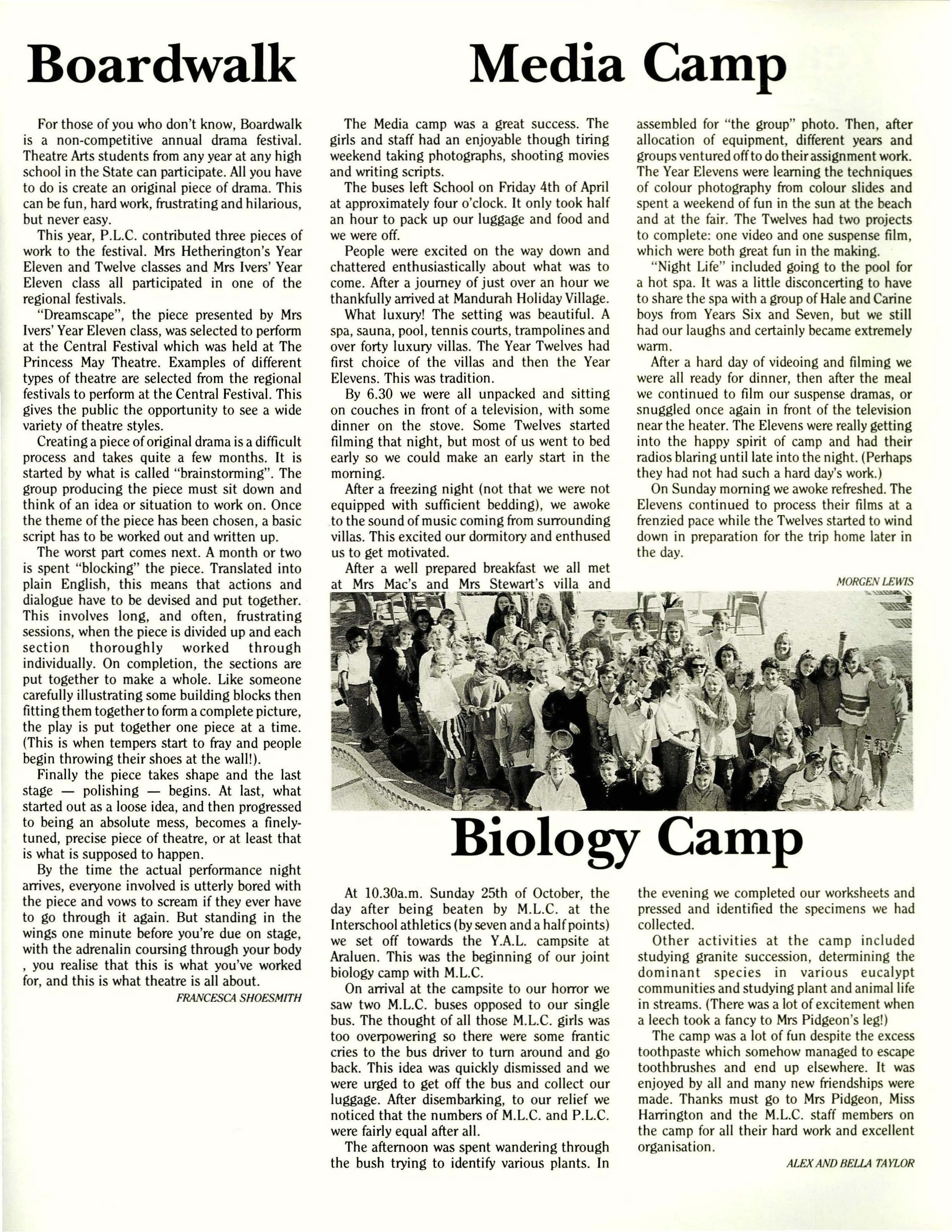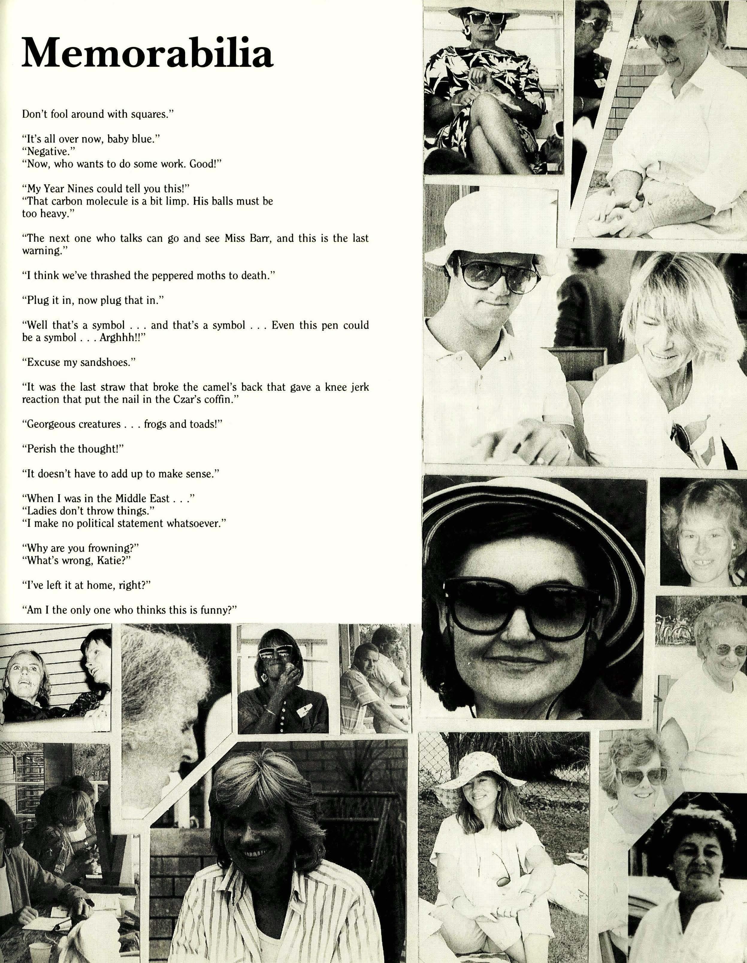 In the process of editing this year's Kookaburra, I noticed that the term "high standard" appeared again and again in reports on sports, arts and House events. As well as pointing out the high level of achievement of the average P.L.C. student, this conjures up the image of a particularly tall flag-pole. This is not as ludicrous as it may seem at first. The higher our "standard" is, the further the distance from which it can be seen, so people from well outside the school community can recognize P.L.C. for its multidudious and diverse talents.