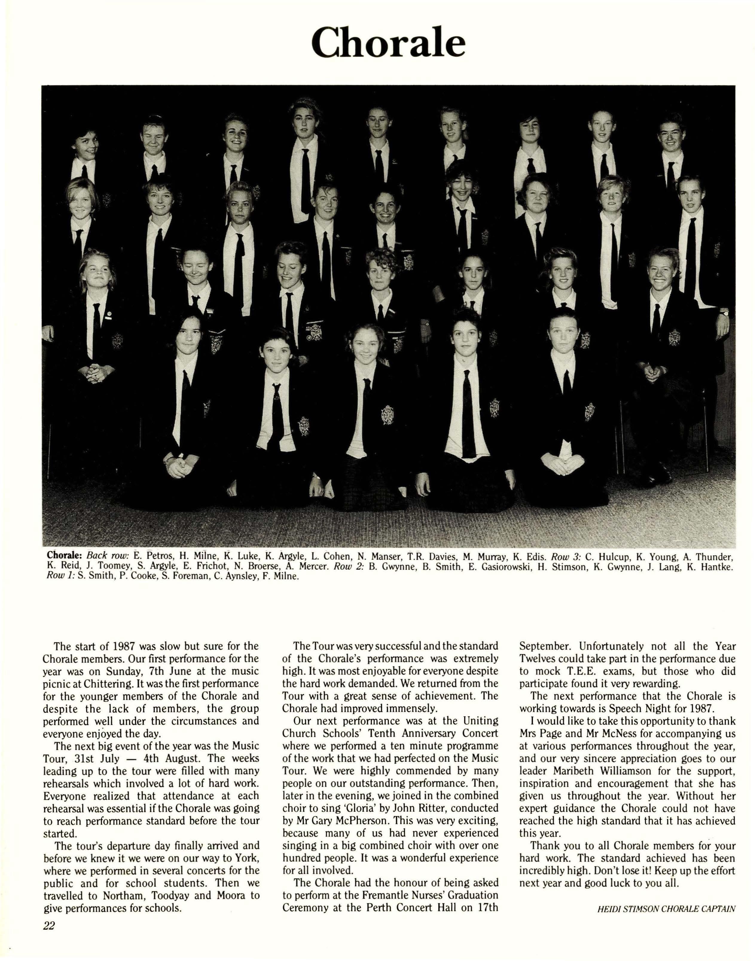 The 1987 Service was one of the highlights of the school year; the feeling of participation by the School community was one matched only by that on Speech Night.