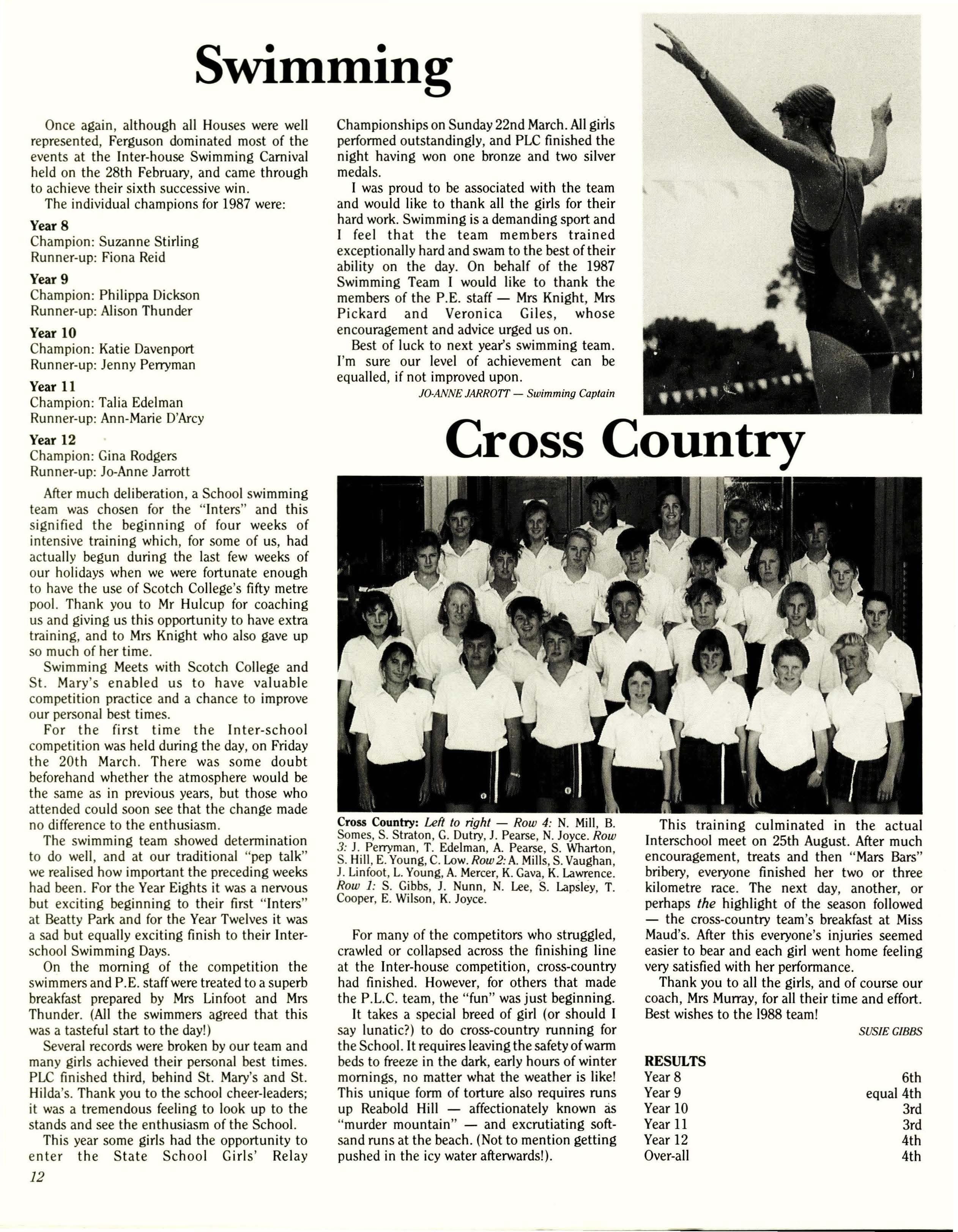 Earlier on in the year, P.L.C. achieved excellent results in the Interschool Swimming, being placed third over-all. Once again, congratulations to the Year Tens on winning their individual Year trophy.