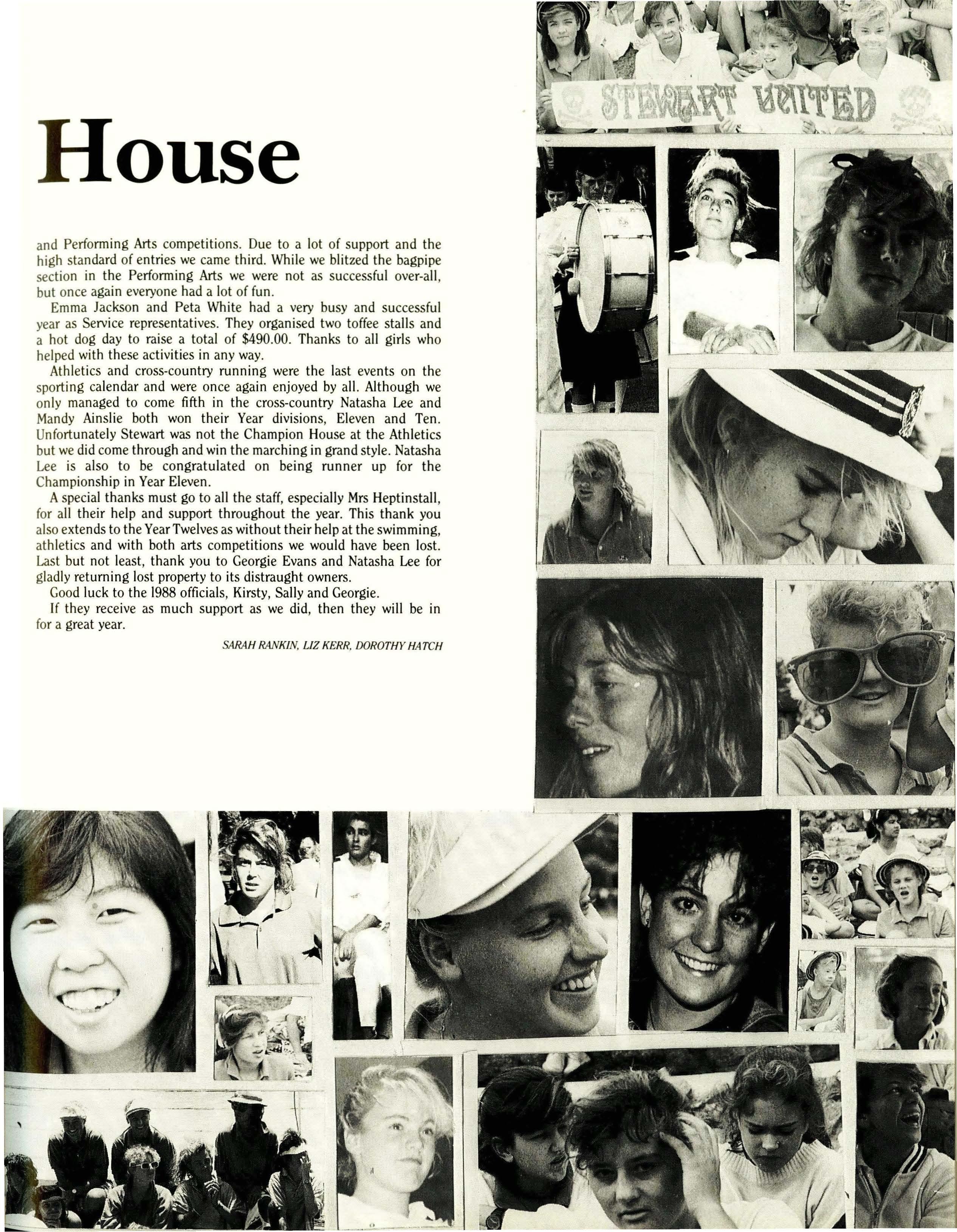 House activities followed much the same format as in previous years. Events such as the Inter-house swimming and athletics, the House plays and Arts Festival gave all students at least one opportunity to be a star. There seemed to be a section for everyone. The House officials are still in a state of stunned admiration for the willingness of girls in their House to be involved and do their best in arts, sports and fund-raising.