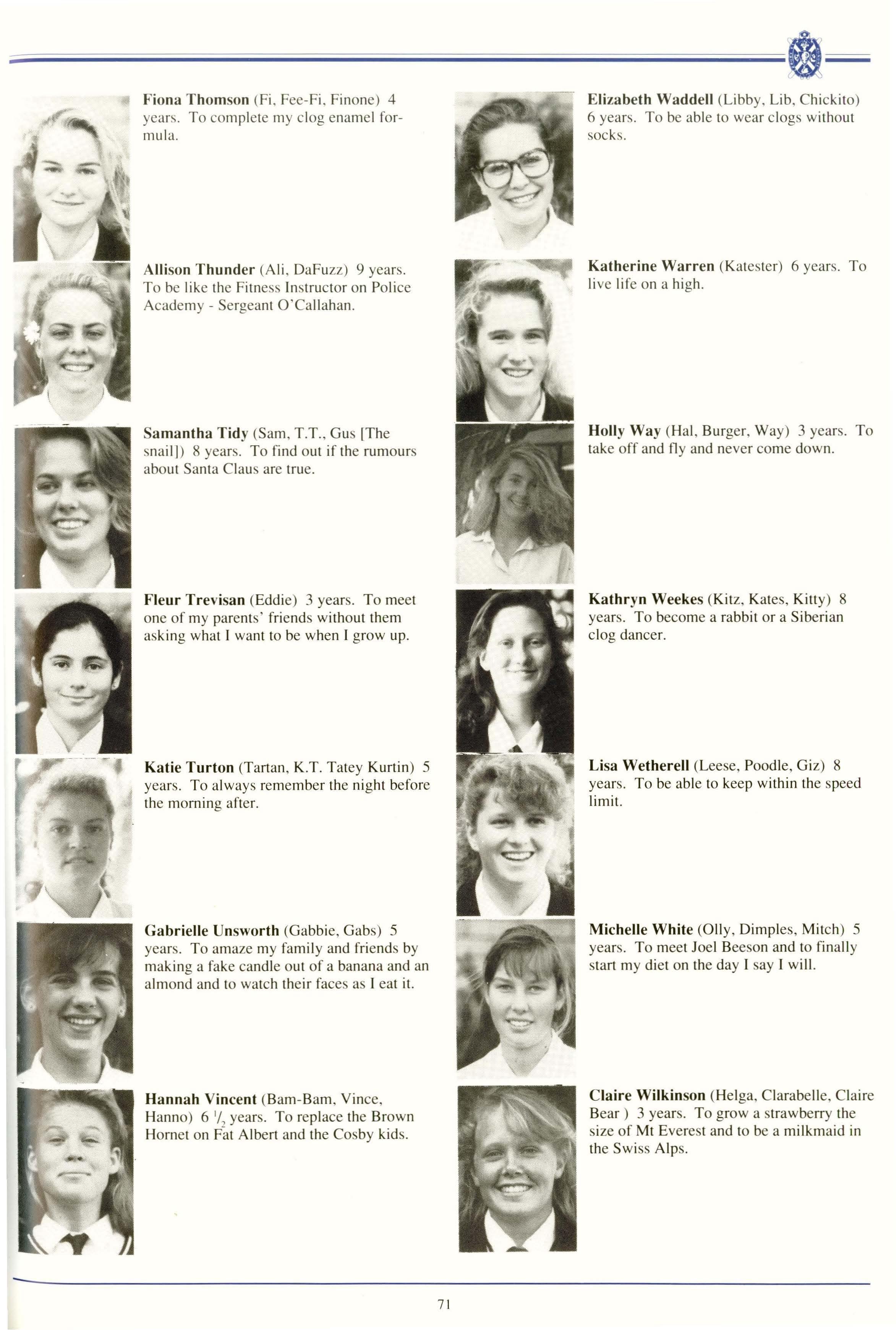 Ferguson - Mrs J. MacLean, Dip.Teach.,Cert.Phys.Ed.( Edin.) McNeil - Mrs J. McMahon, Teach.Cert., Grad.Dip. (Media)